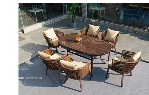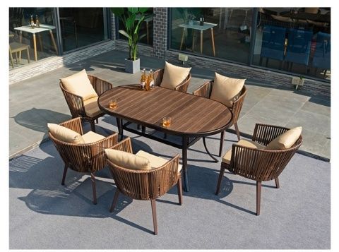 • 테이블 1개와 의자 6개: 160cm 스트립 플라스틱 목재, 타원형