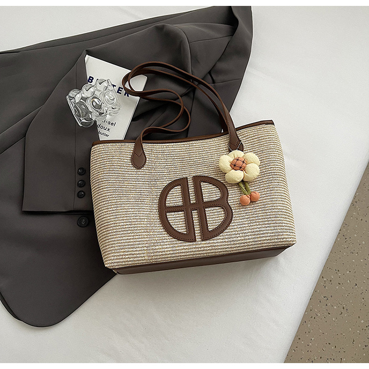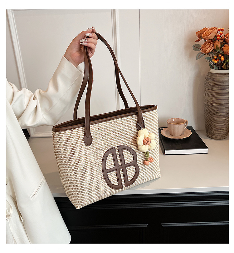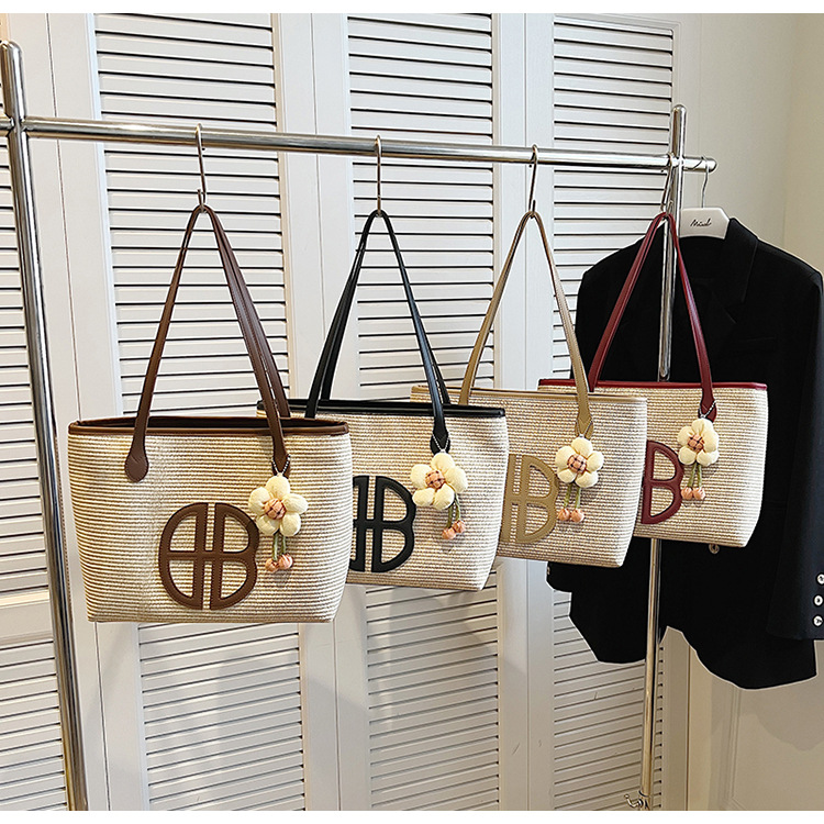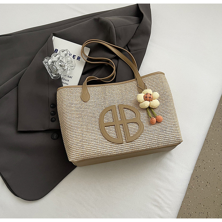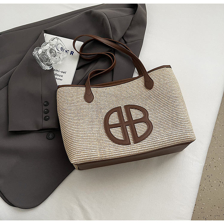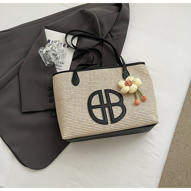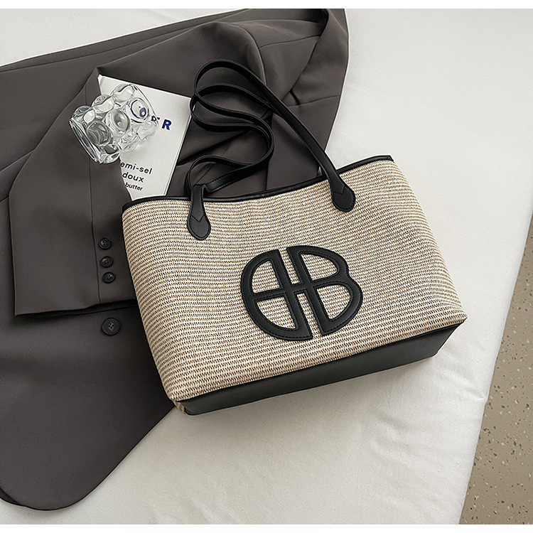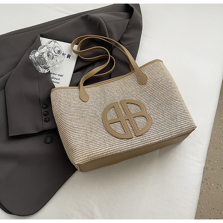 여름 짠 가방 여성 가방 2023 새로운 패션 빈티지 토트 백 모든 경기 대용량 어깨 손 쇼핑백스토어 가기