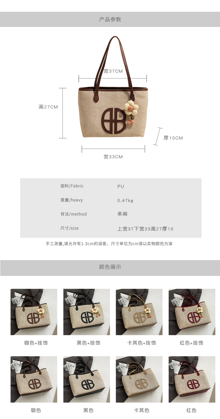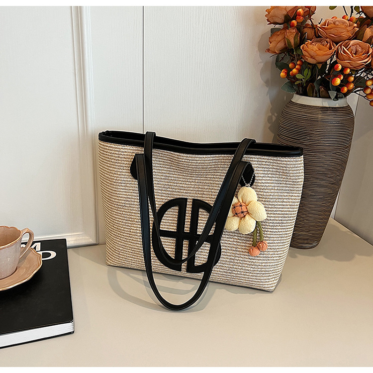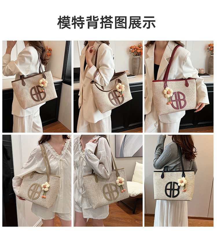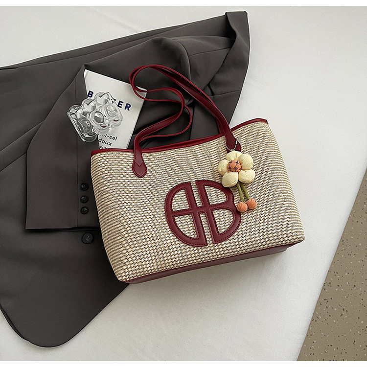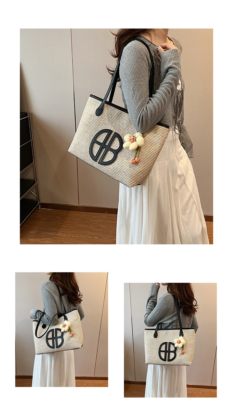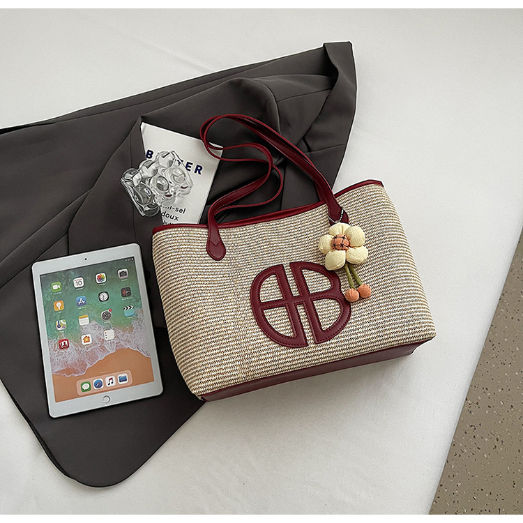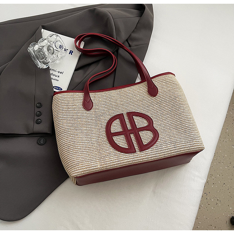 여름 짠 가방 여성 가방 2023 새로운 패션 빈티지 토트 백 모든 경기 대용량 어깨 손 쇼핑백스토어 가기