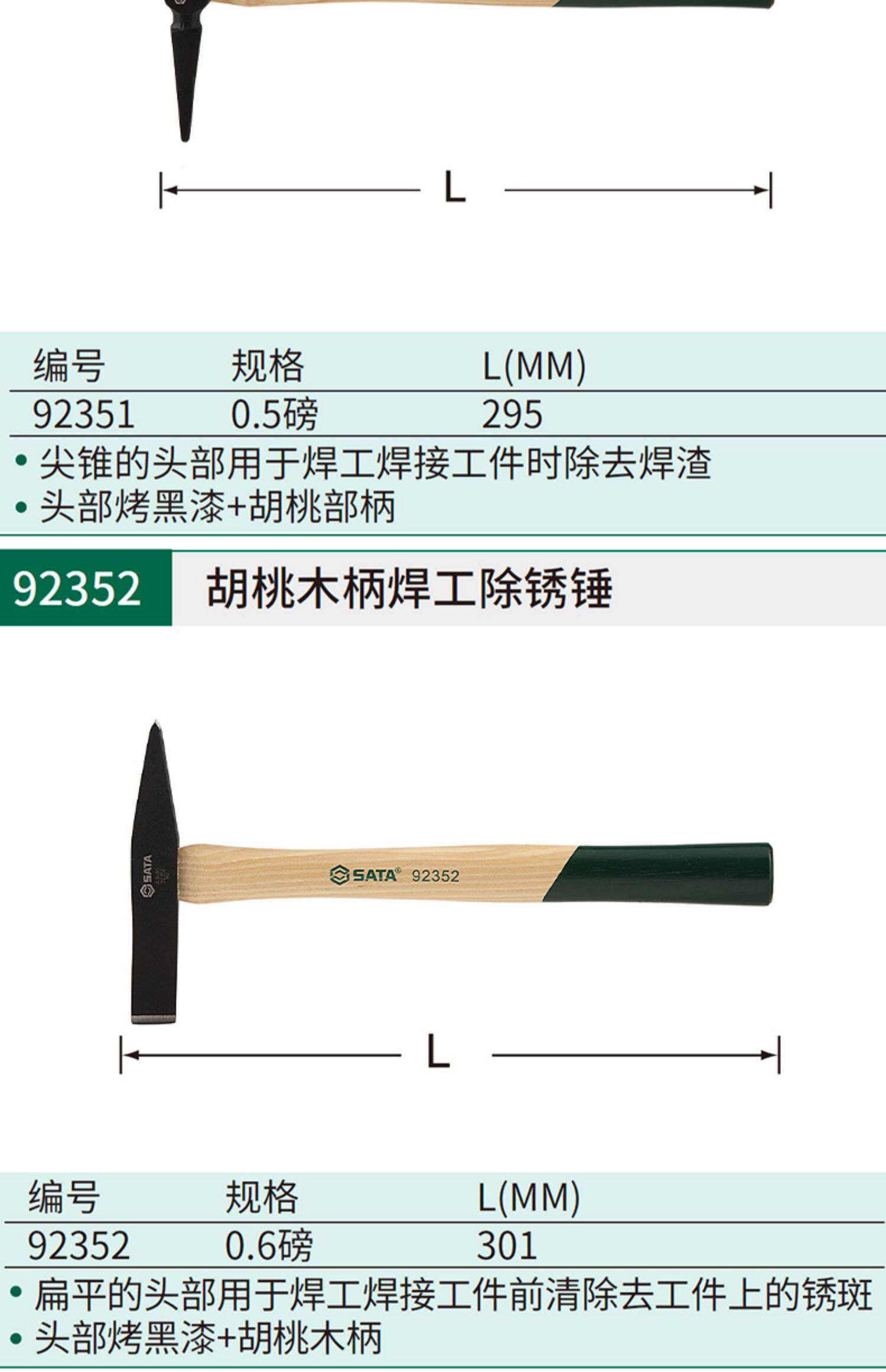 • 92351/호두 핸들 용접기 슬래그 해머 0.5 파운드
