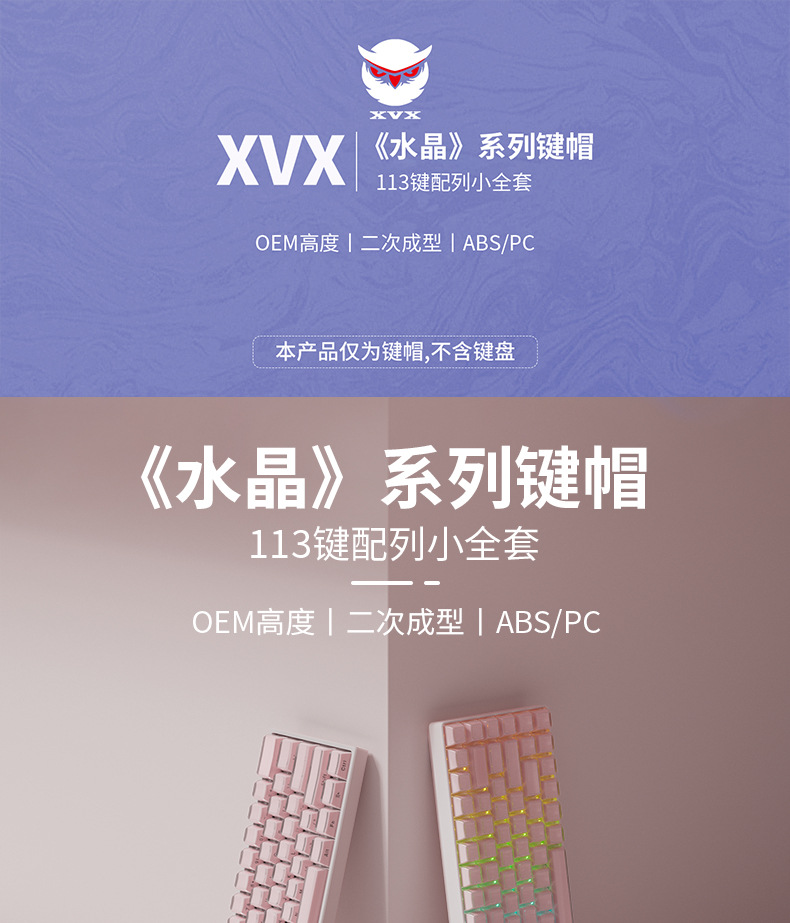 XVX 크리스탈 젤리 키캡 2차 성형 PC 고급스러운 사이드 각인 영어, 일본어, 한국어, 러시아어 문자 113키스토어 가기