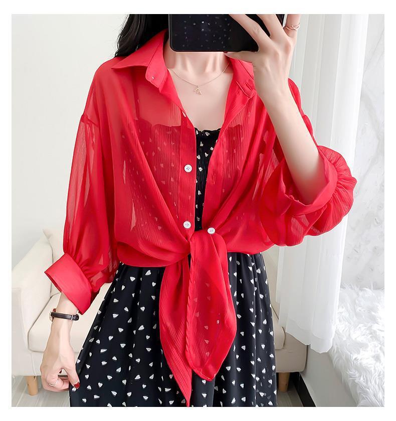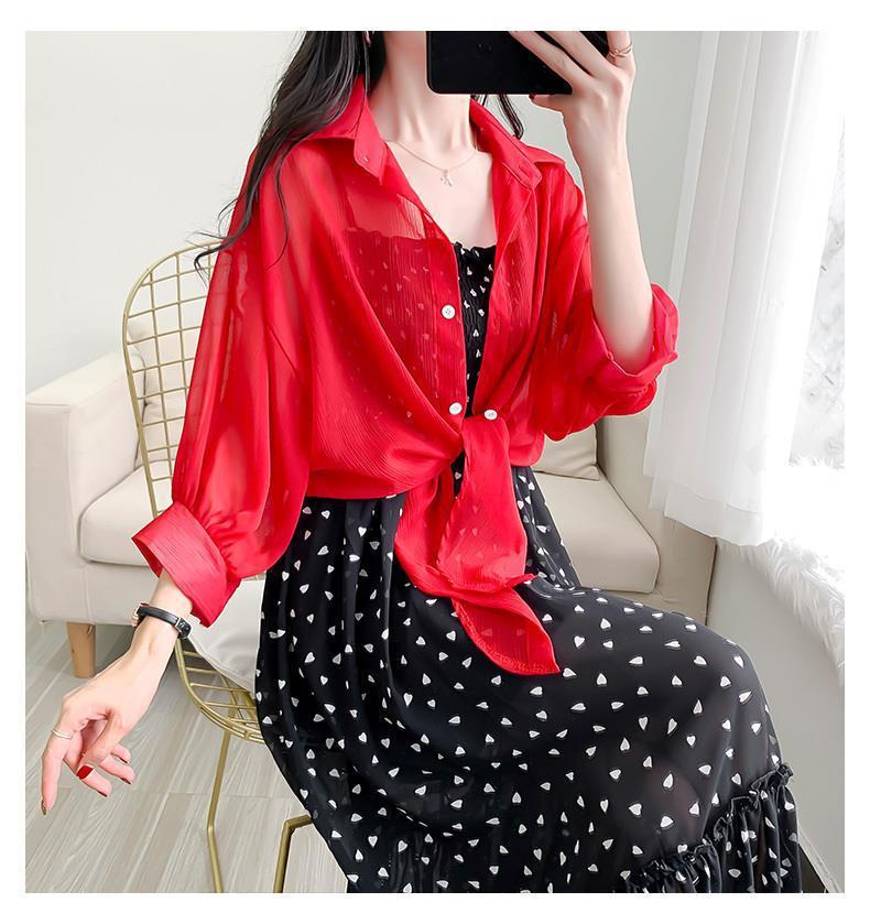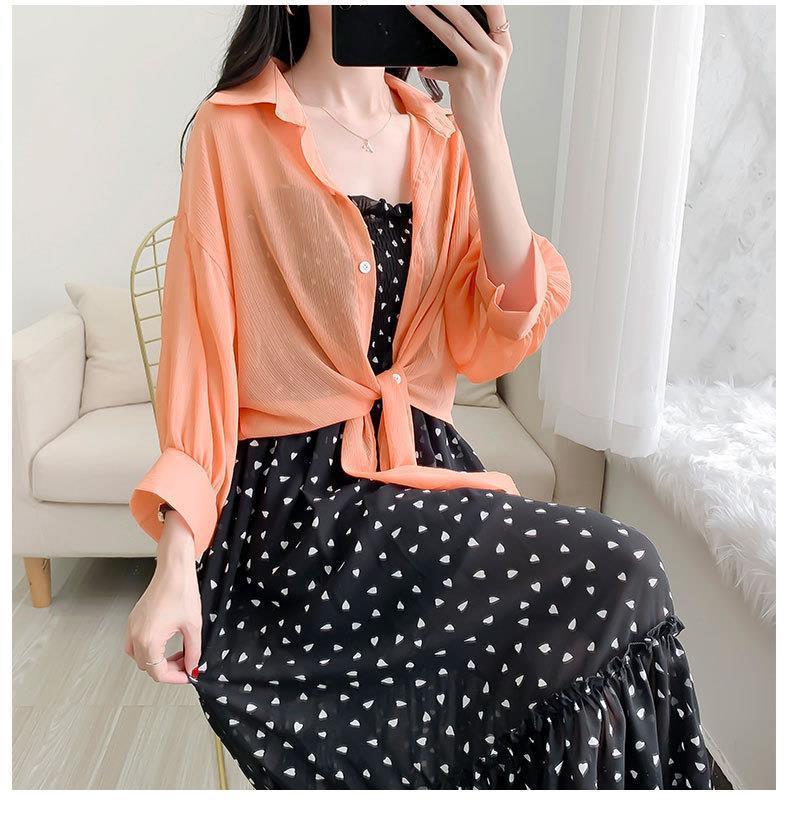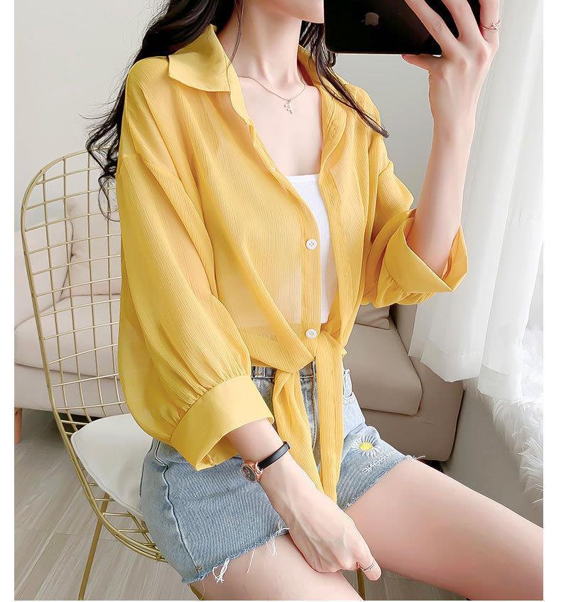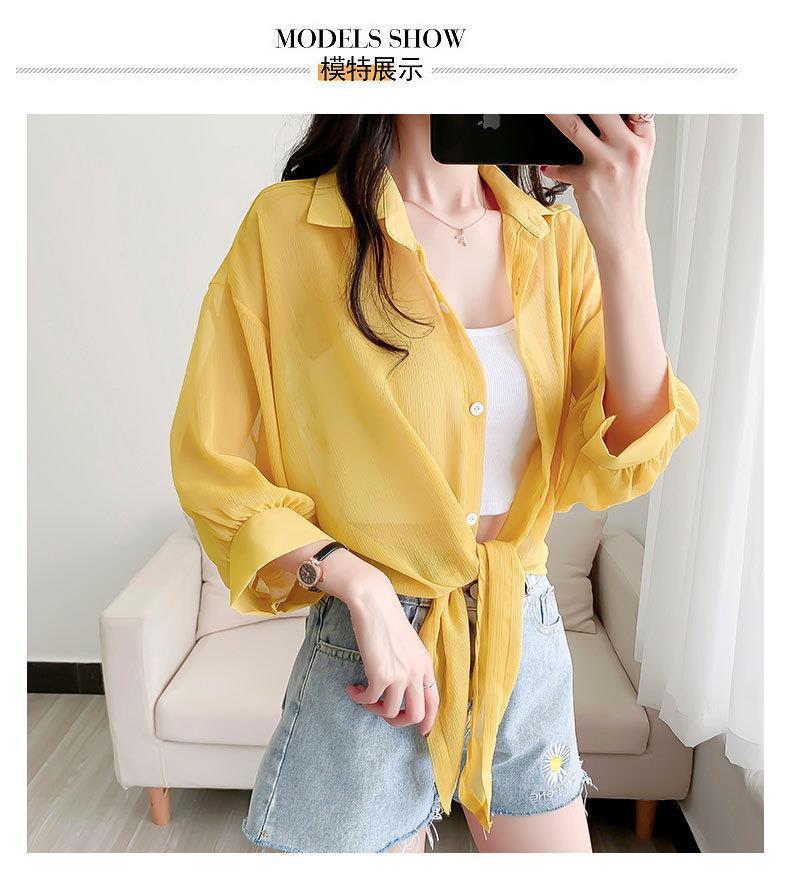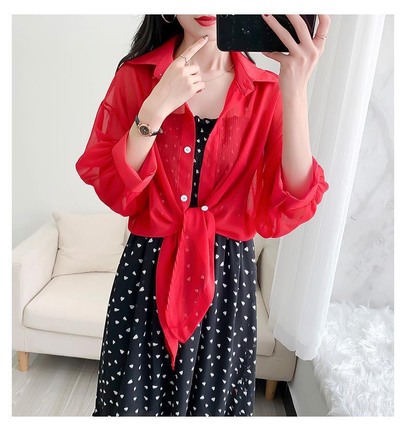 선스크린 의류 여성 7 점 선 스크린 의류 셔츠 새 여름 짧은 쉬폰 얇은 여성 유행 목도리 카디건 착용스토어 가기
