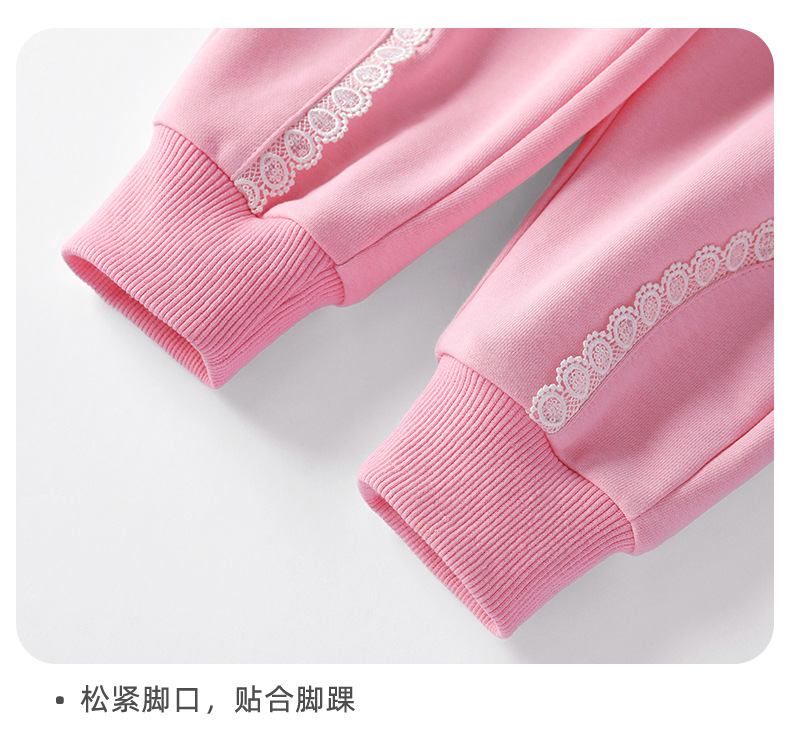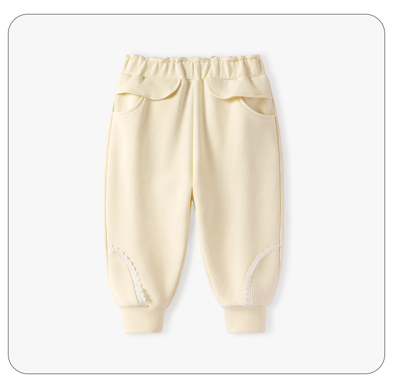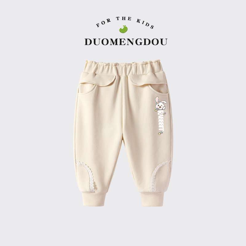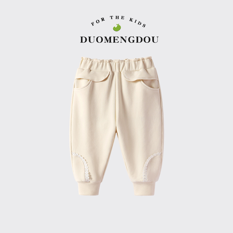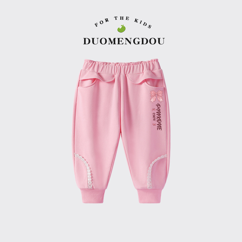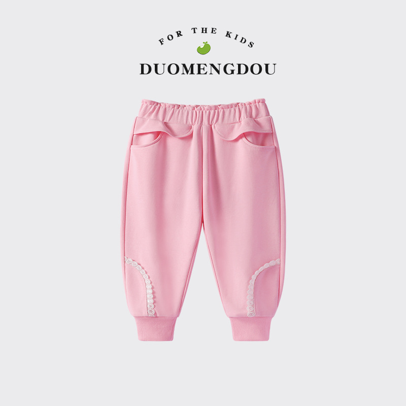 Duo Meng Bean Girls 'speatpants 2024 봄과 가을 새로운 러플 레이스 바느질 바지 GCJ