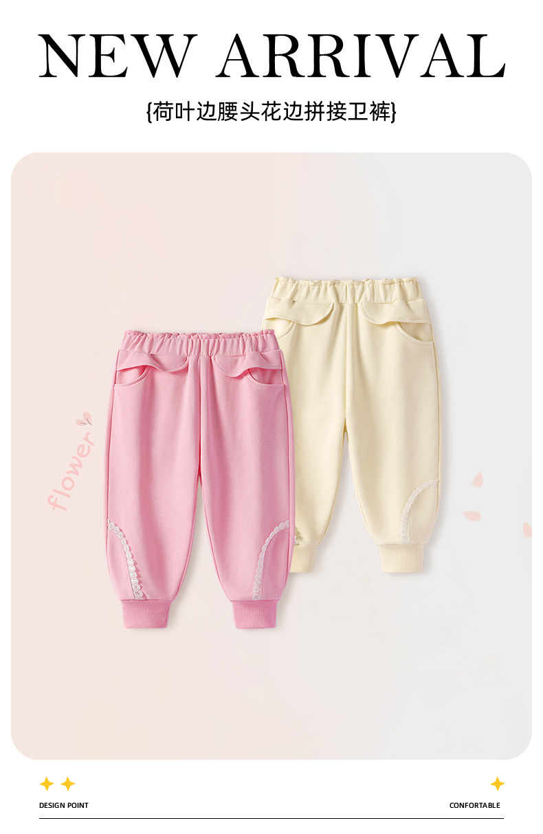 Duo Meng Bean Girls 'speatpants 2024 봄과 가을 새로운 러플 레이스 바느질 바지 GCJ스토어 가기