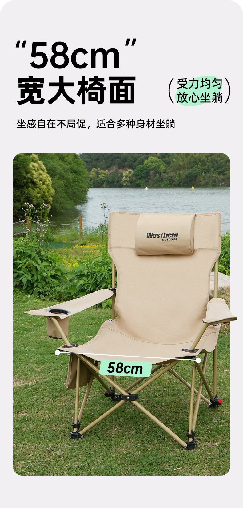 나는 야외 접는 리커너 4 기어 조정 캠핑 의자 휴대용 낚시 의자 비치 의자 캠핑 감독 의자