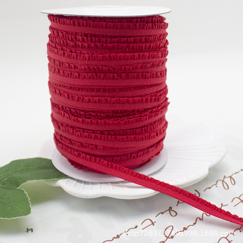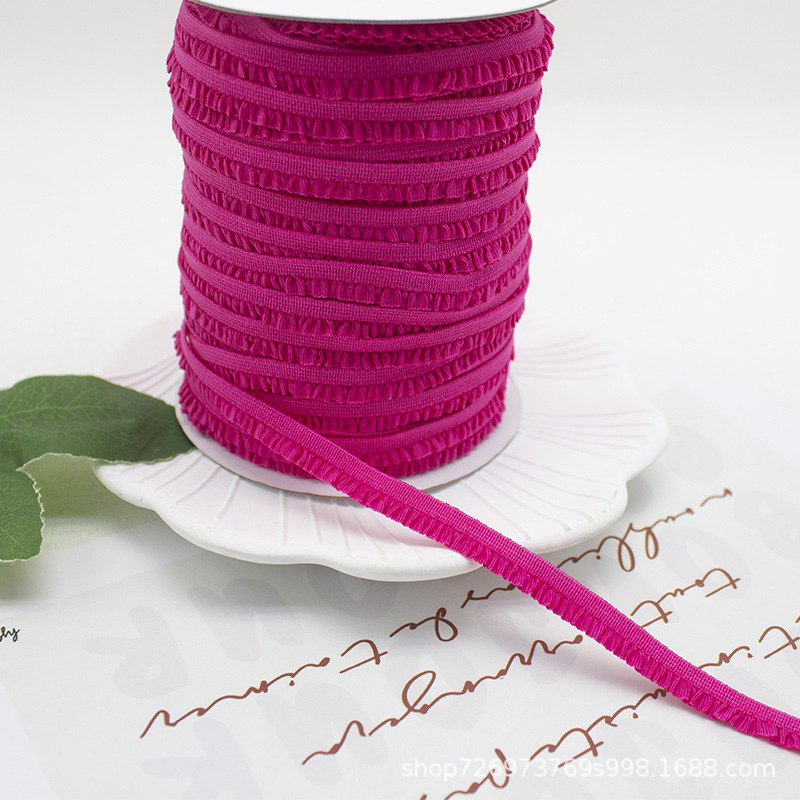 재고 있음 멀티 컬러 0.6CM 단일 측면 골판지 탄성 주름 연꽃 레이스 DIY 스커트 헤어 액세서리 아동 의류 칼라 액세서리