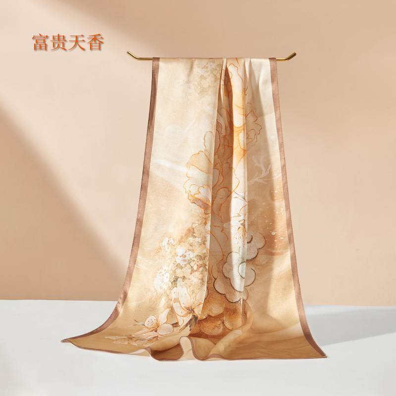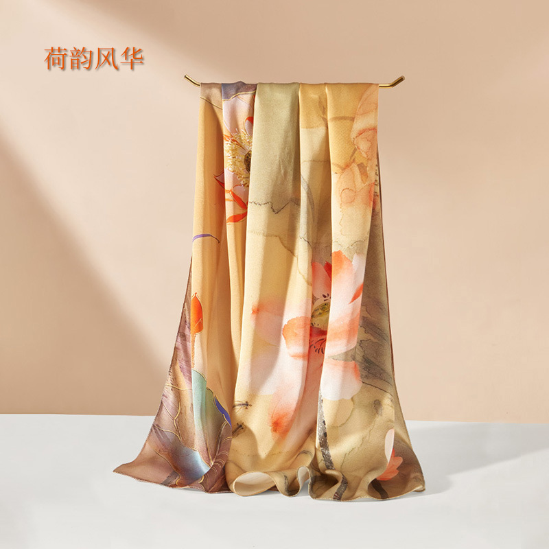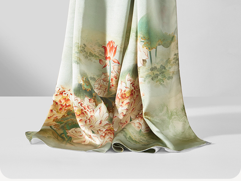 100% 뽕나무 실크 스카프 여성 Guofeng 인쇄 패턴 어머니 하이 엔드 선물을위한 우아한 동양 맛 실크 스카프