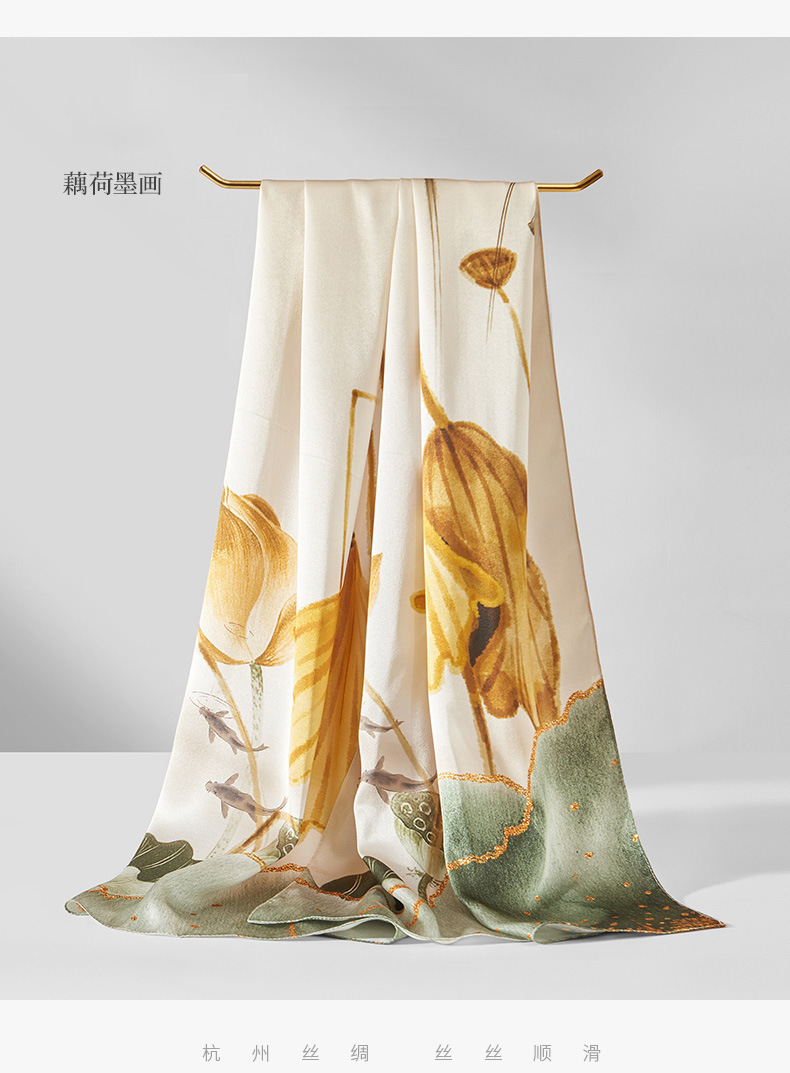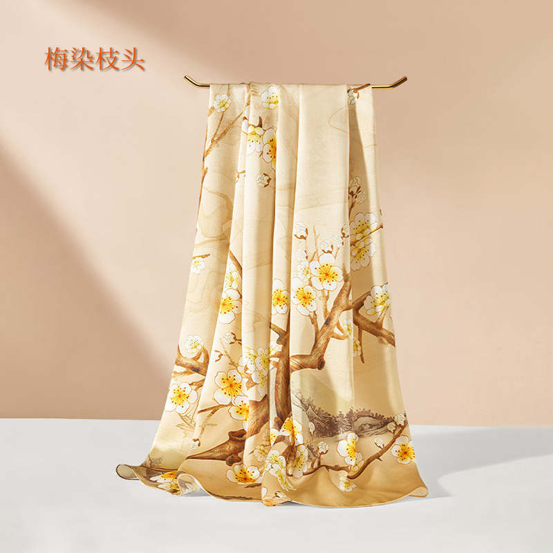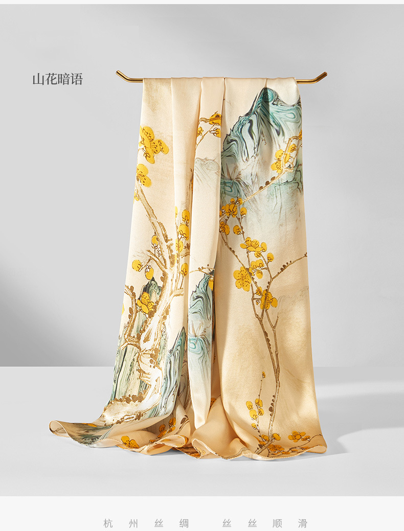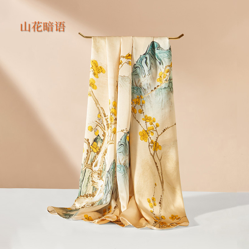 100% 뽕나무 실크 스카프 여성 Guofeng 인쇄 패턴 어머니 하이 엔드 선물을위한 우아한 동양 맛 실크 스카프스토어 가기