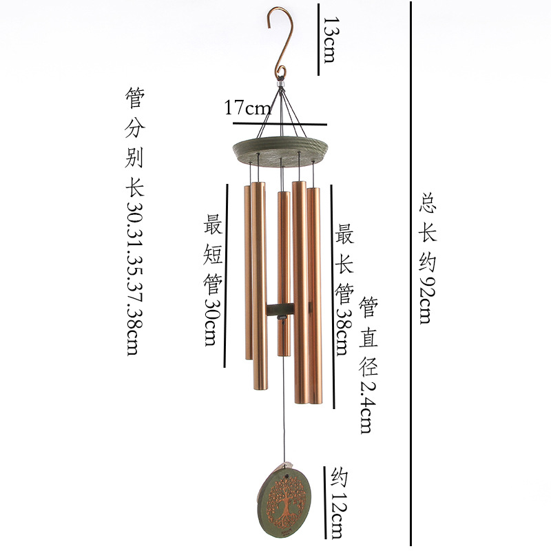 단단한 나무 음악 바람 벨 매달려 장식품 문 장식품 생명의 나무와 회오리 바람 능선 5 금속 관 침실 발코니 펜던트 선물