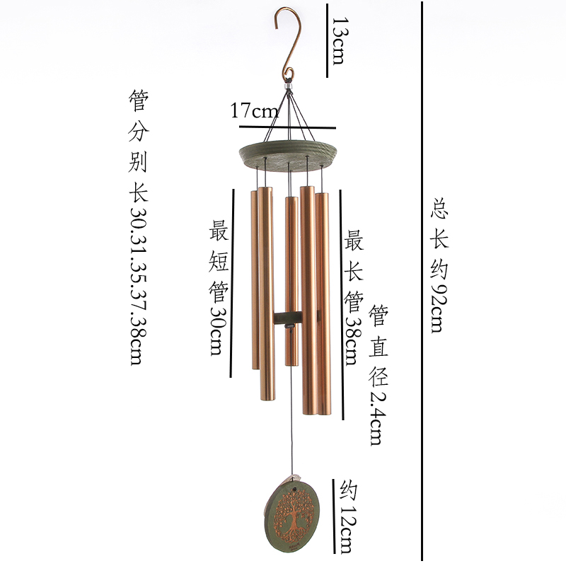 단단한 나무 음악 바람 벨 매달려 장식품 문 장식품 생명의 나무와 회오리 바람 능선 5 금속 관 침실 발코니 펜던트 선물스토어 가기
