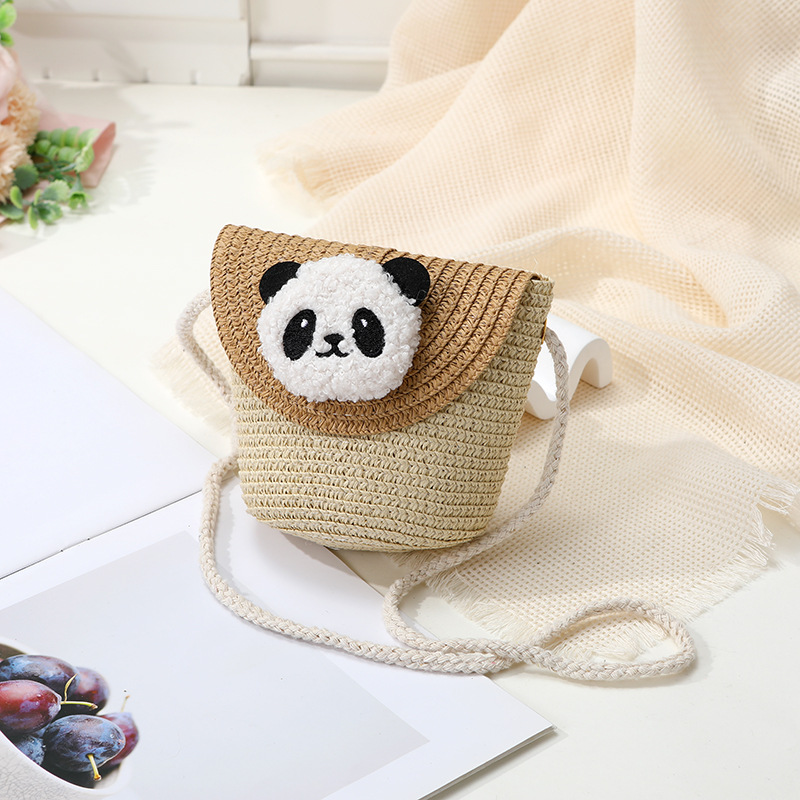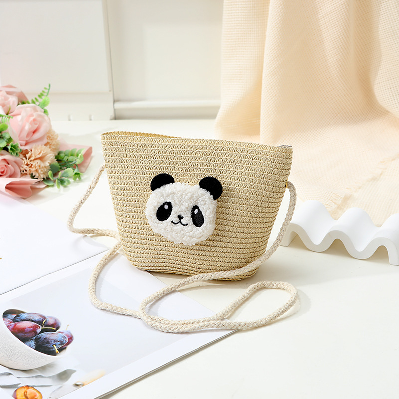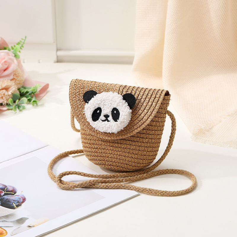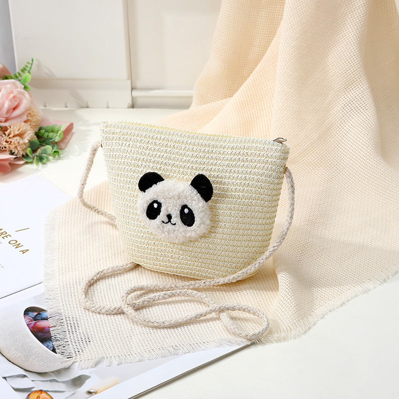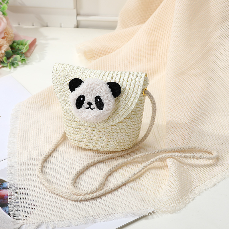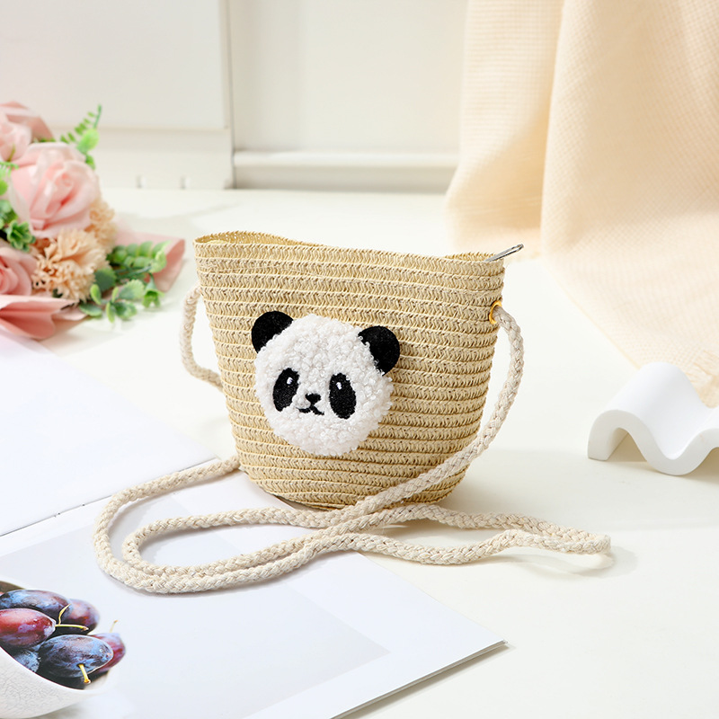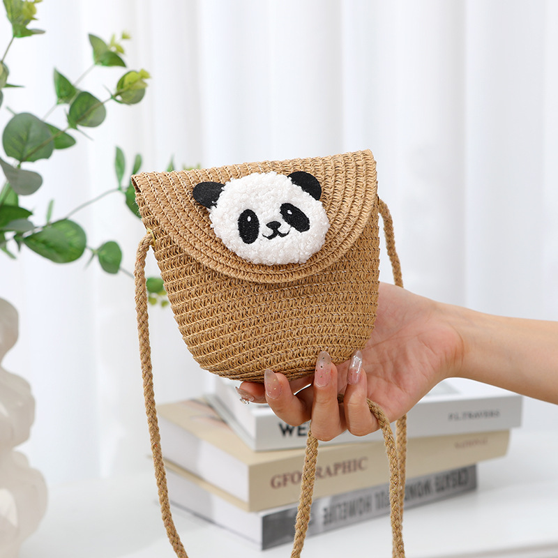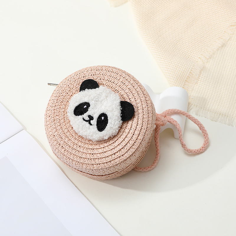 작은 팬더 밀짚 가방 2025 신상 여름 해변 밀짚 가방 여성용 미니 귀여운 휴대폰 크로스백스토어 가기
