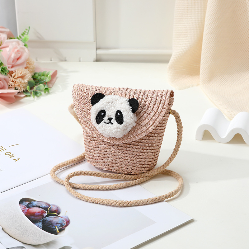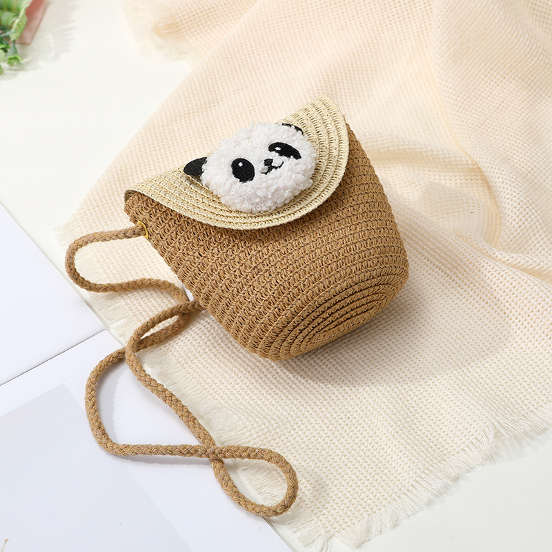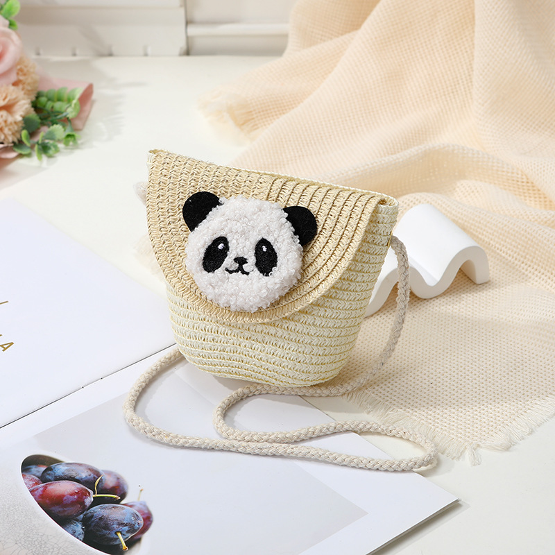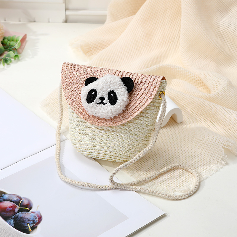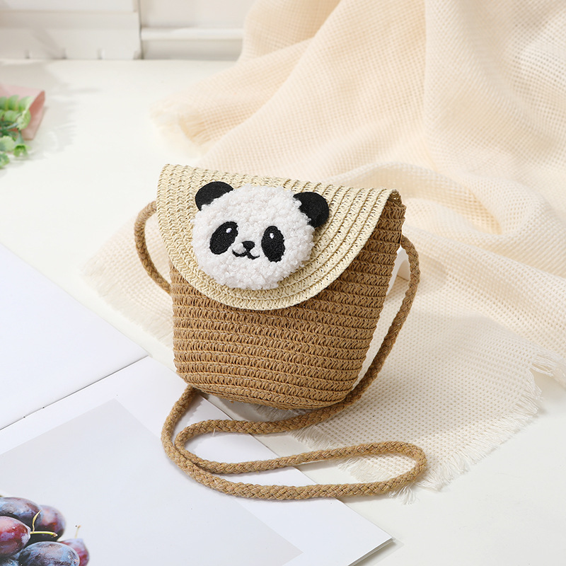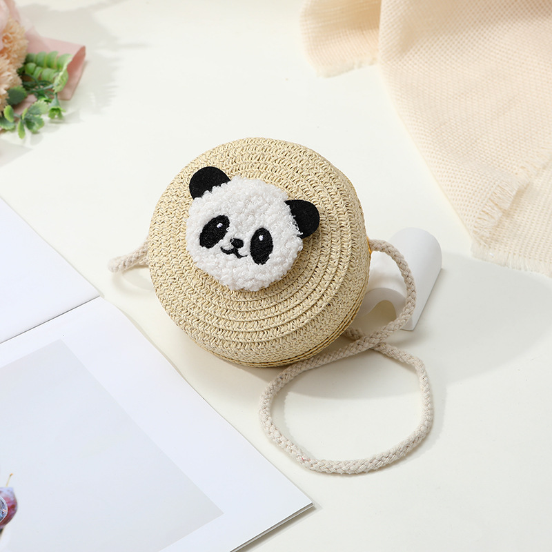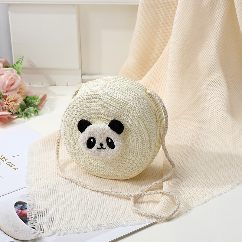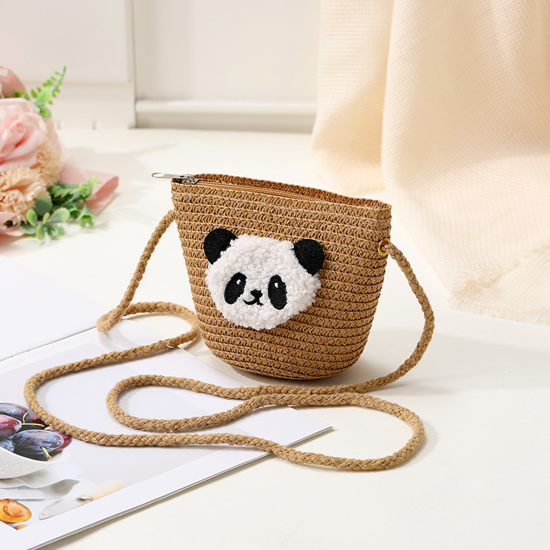 작은 팬더 밀짚 가방 2025 신상 여름 해변 밀짚 가방 여성용 미니 귀여운 휴대폰 크로스백스토어 가기