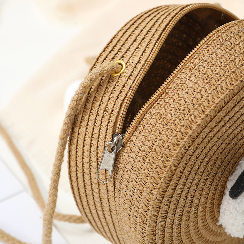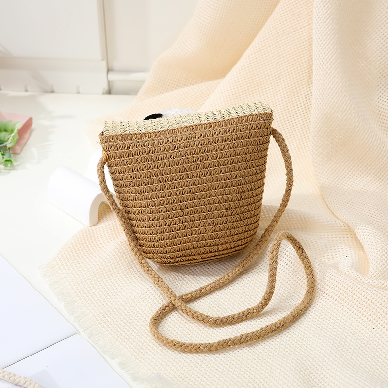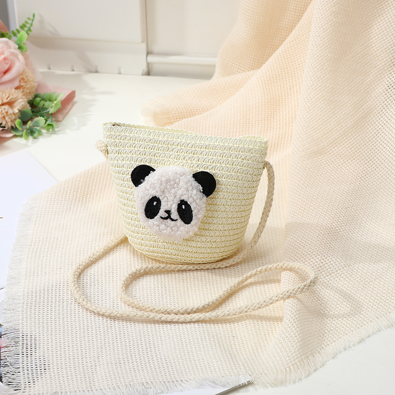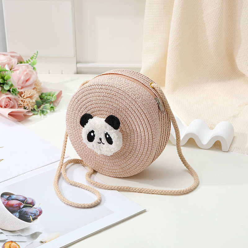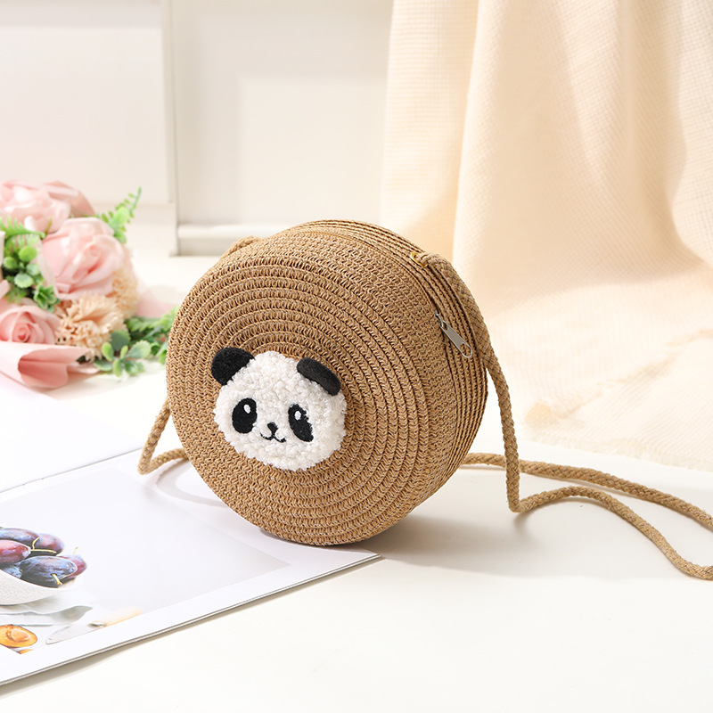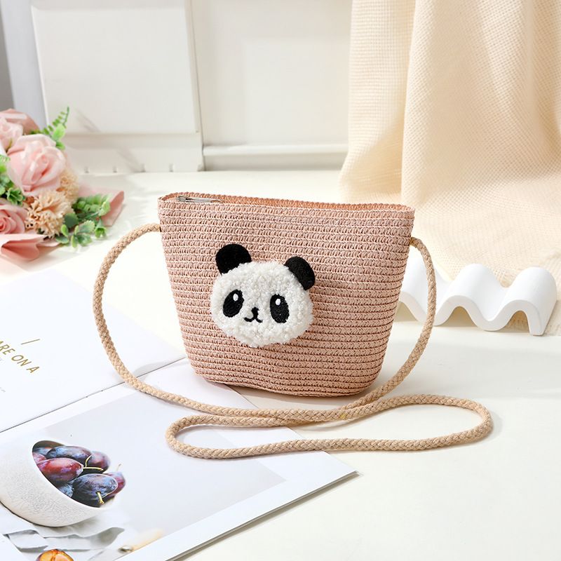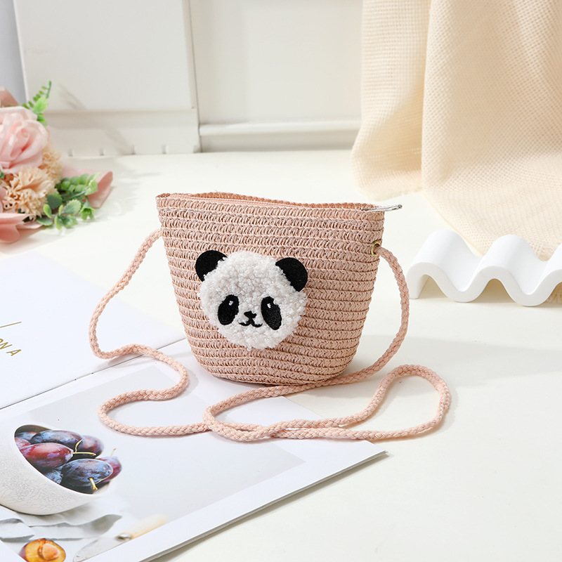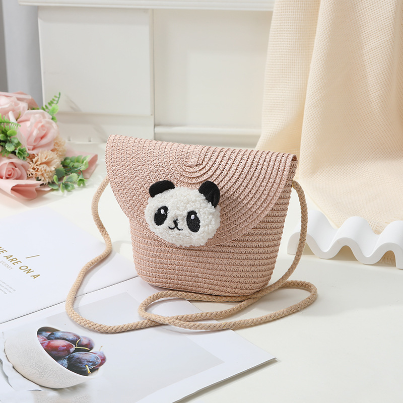 작은 팬더 밀짚 가방 2025 신상 여름 해변 밀짚 가방 여성용 미니 귀여운 휴대폰 크로스백스토어 가기