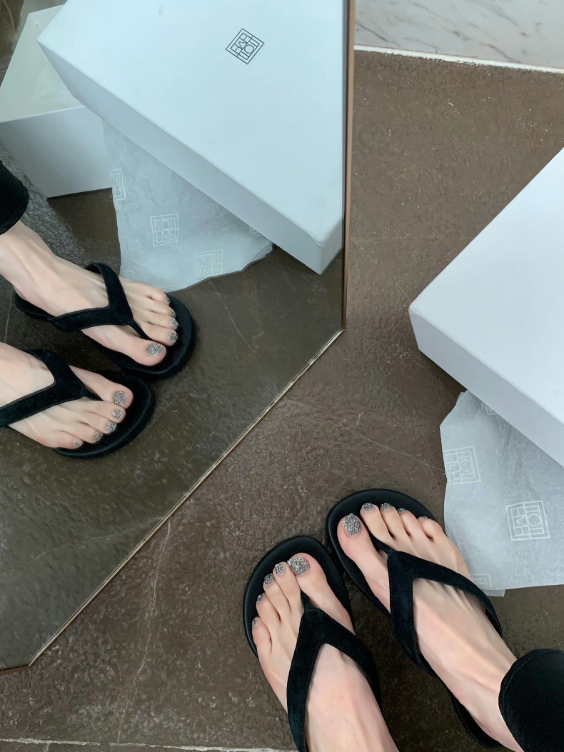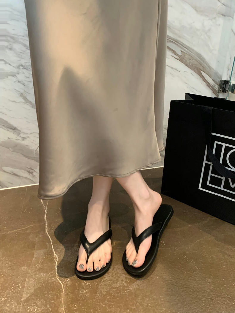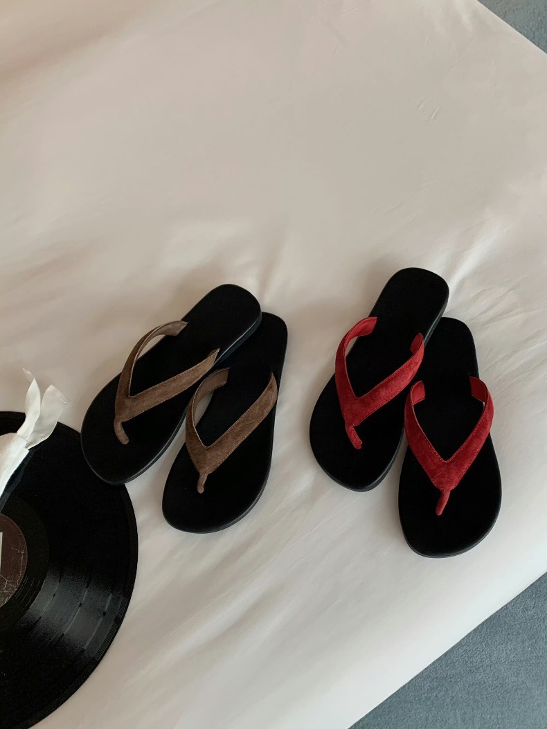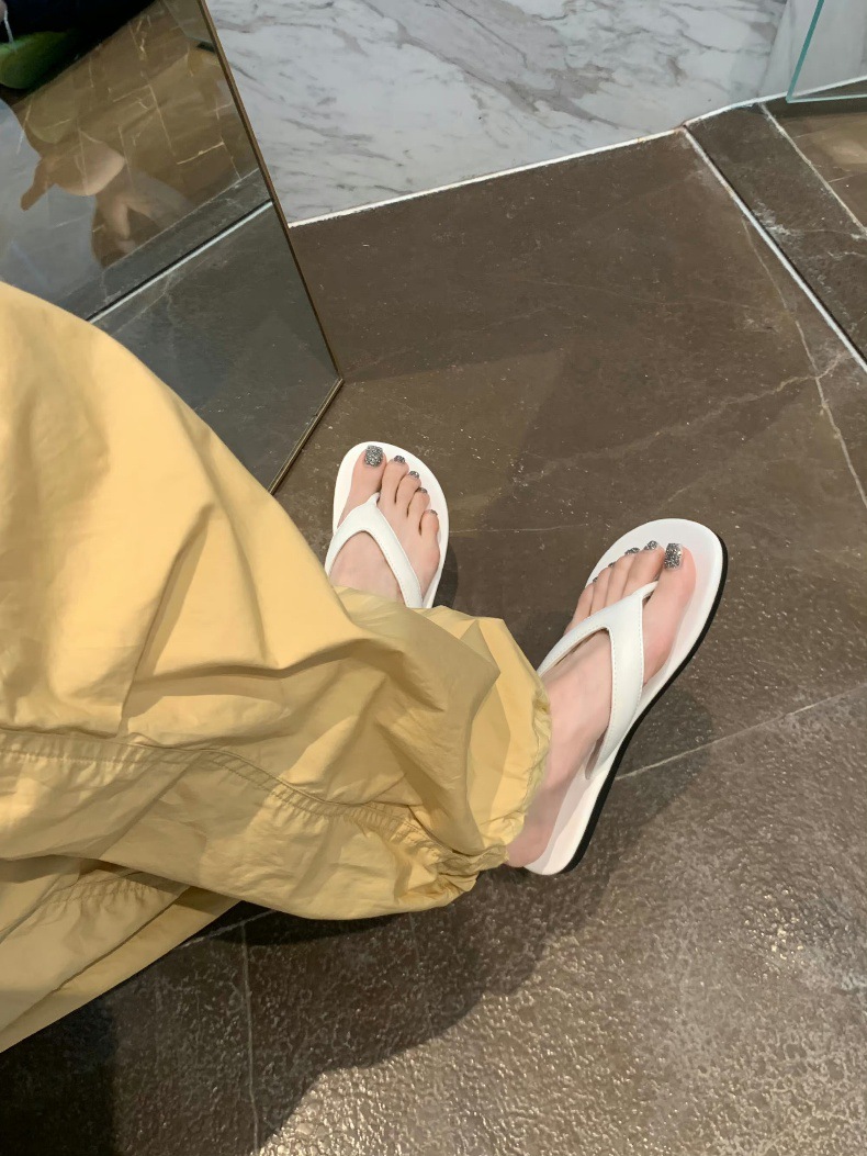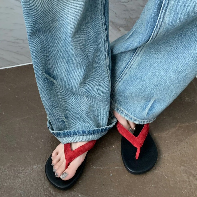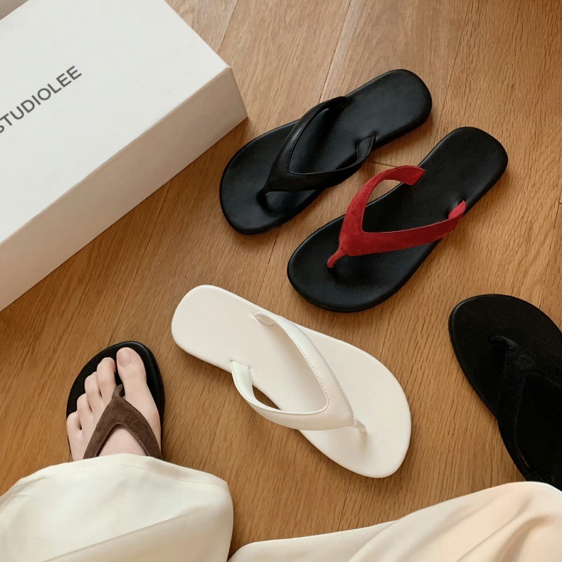 양가죽 버전 ~ 미니멀리스트 클립 토 비치 휴가 올 매치 플립 플롭 여성 여름 정품 가죽 하프 슬리퍼 프랑스 스타일 작은 샌들스토어 가기