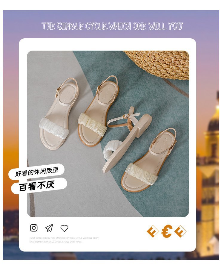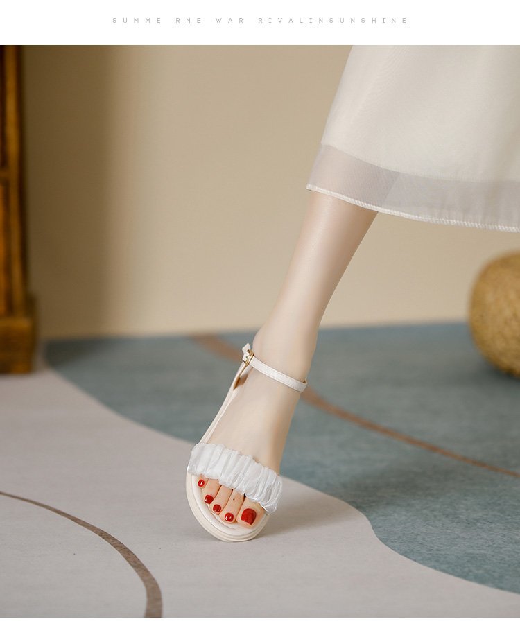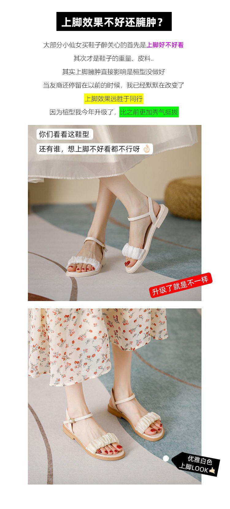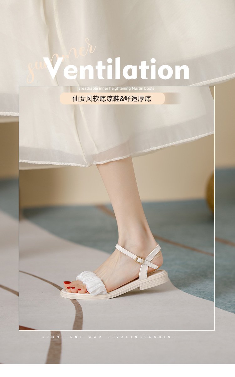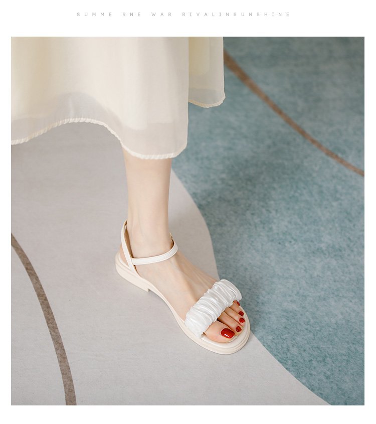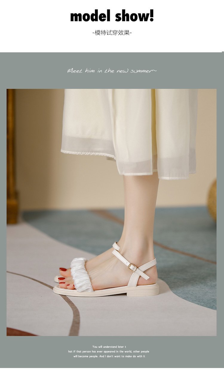샌들 여성 여름 2024 새로운 소프트 솔 진주 요정 화이트 소녀 프렌치 이브닝 스타일 샌들 여성용 플랫스토어 가기