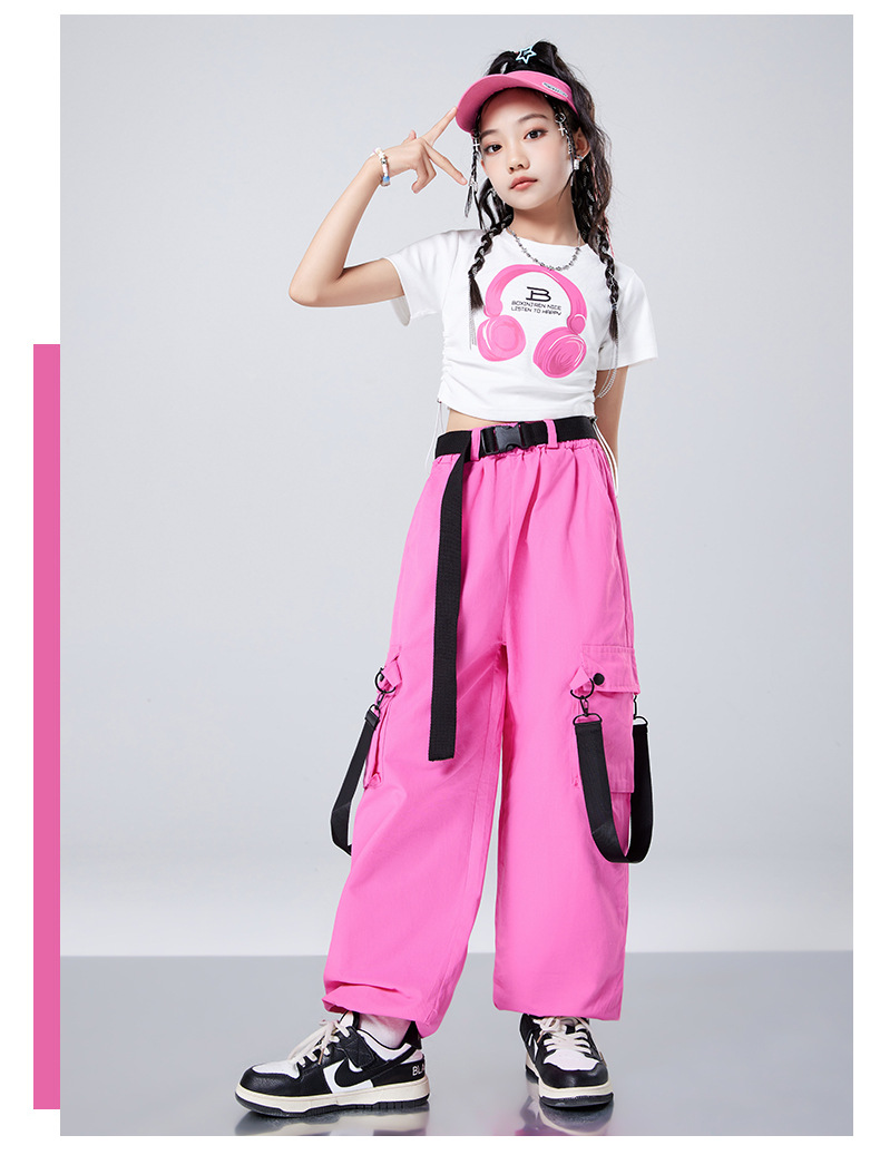 • 7067 헤드폰 흰색 반팔 + 8299 핑크 바지 (벨트 포함)