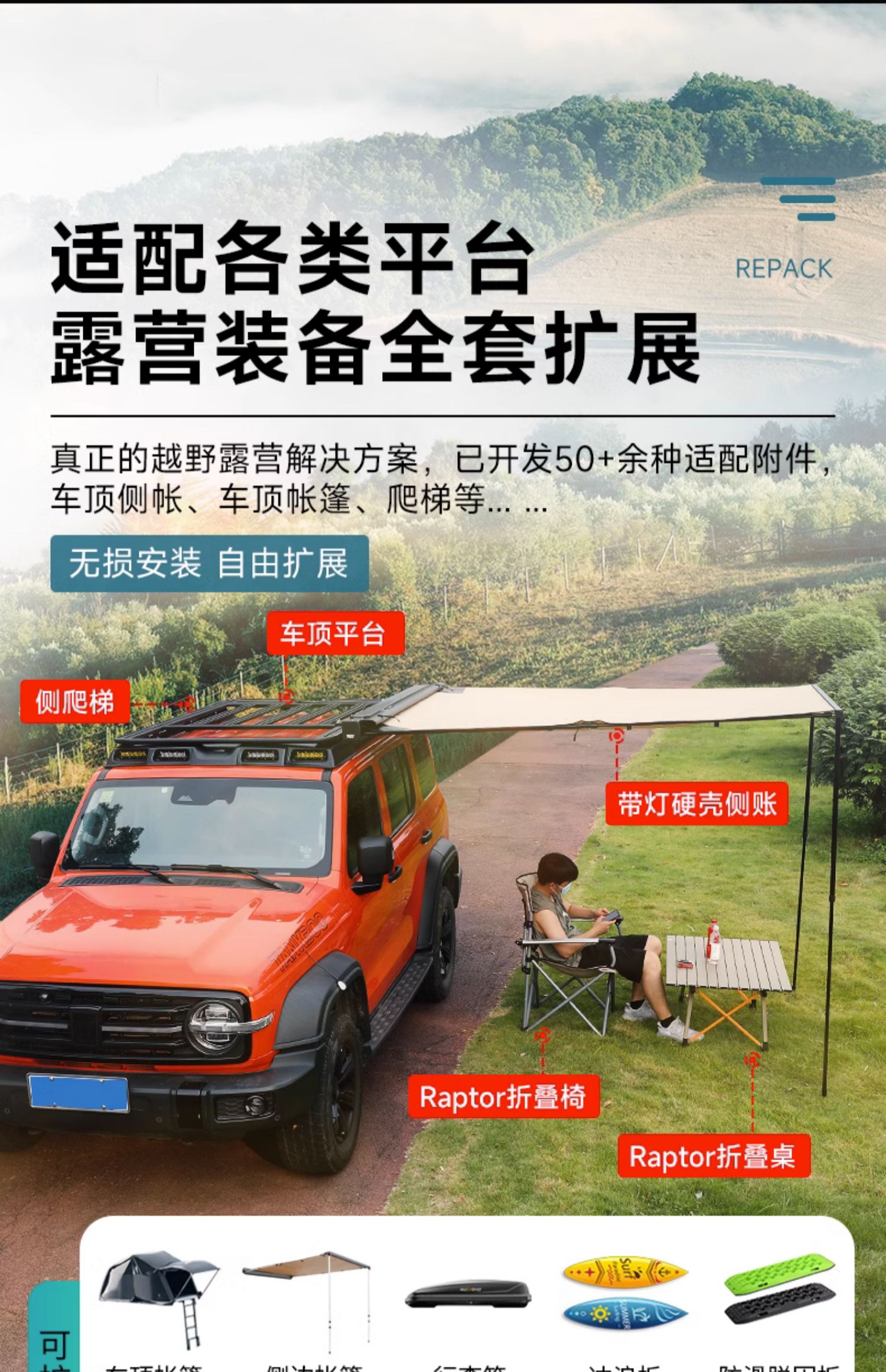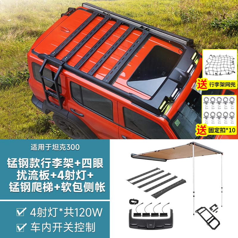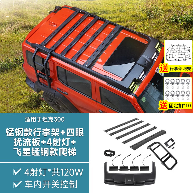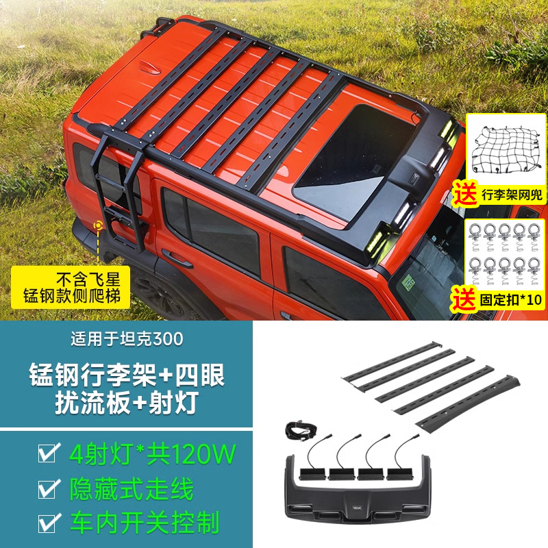 탱크 300 플라잉 스타 수하물 랙 스포일러 개조 LED 스포트라이트 지붕 플랫폼 접이식 사다리 펀치-무료 액세서리스토어 가기