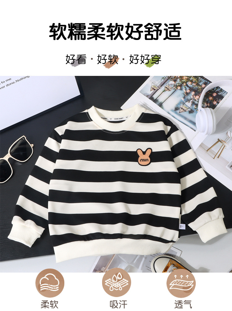 어린이 줄무늬 스웨트셔츠 남아 여아 봄 가을 긴팔 라운드넥 셔츠 루즈핏 상의 트렌디 유아복
