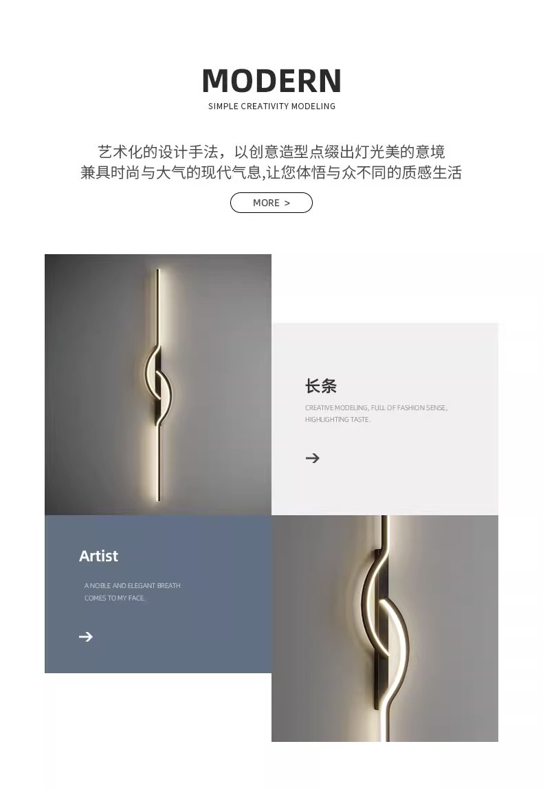 미니멀리스트 창조적 인 스트립 램프 거실 소파 TV 배경 벽 그릴 램프 간단한 현대 침실 침실 램프 벽 램프스토어 가기