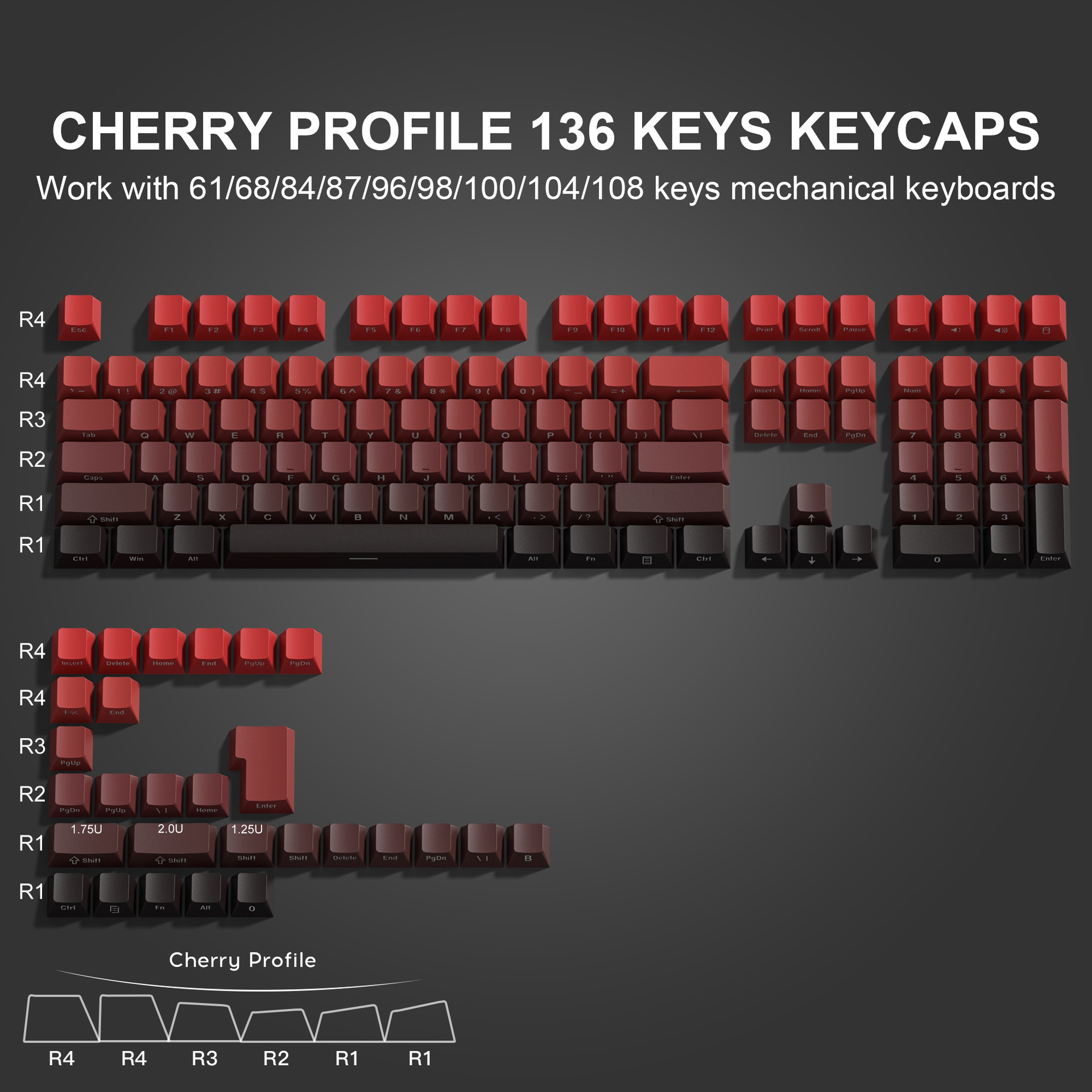 XVX 측면 새겨진 그라디언트 oe m 원래 공장 높이 PBT 2 색 사출 성형 포지티브 사이드 새겨진 광 전송 키 캡 하이 퀄리티 국경