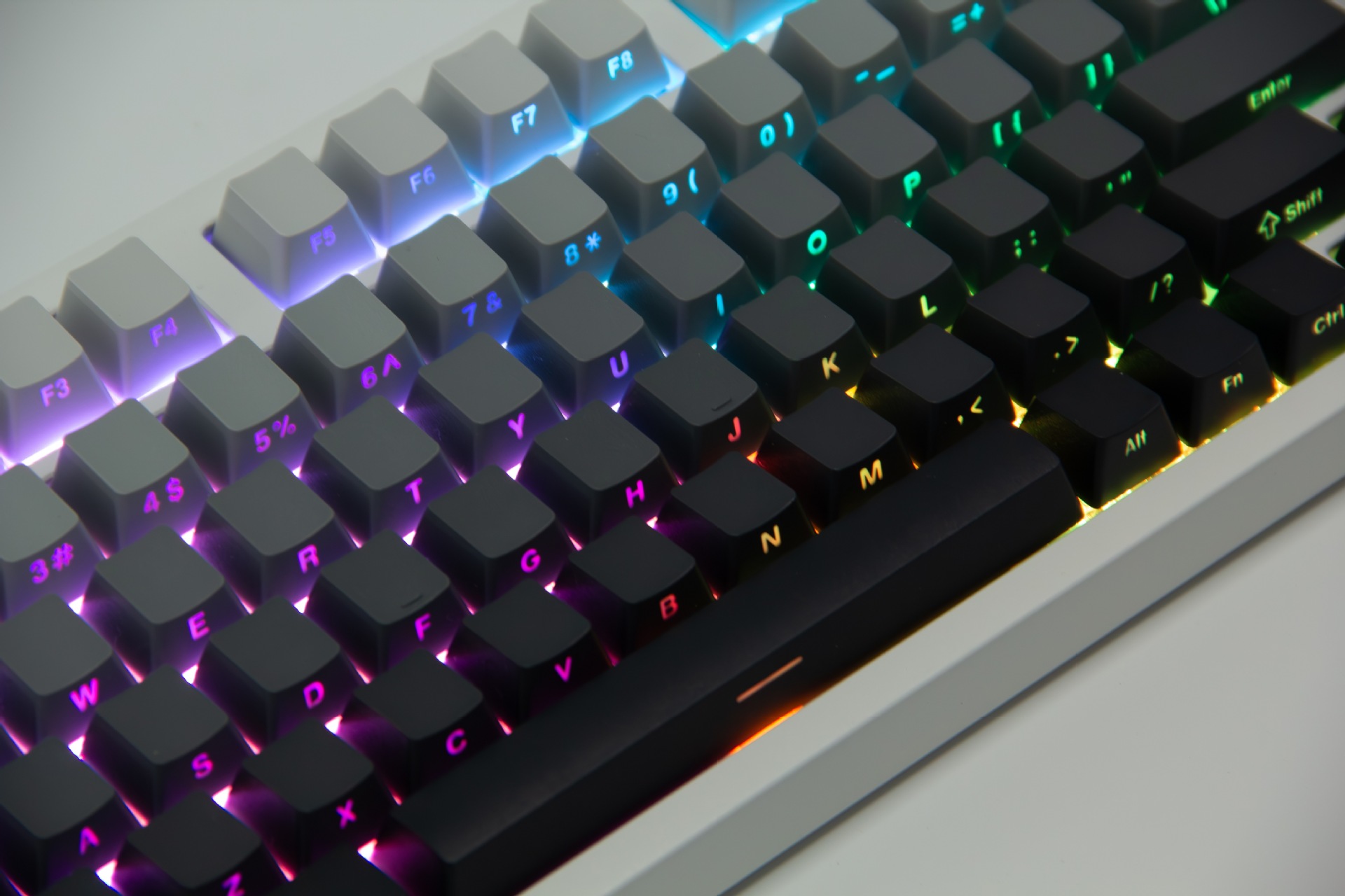 XVX 측면 새겨진 그라디언트 oe m 원래 공장 높이 PBT 2 색 사출 성형 포지티브 사이드 새겨진 광 전송 키 캡 하이 퀄리티 국경스토어 가기