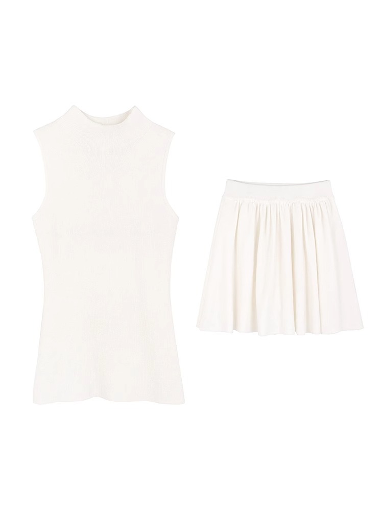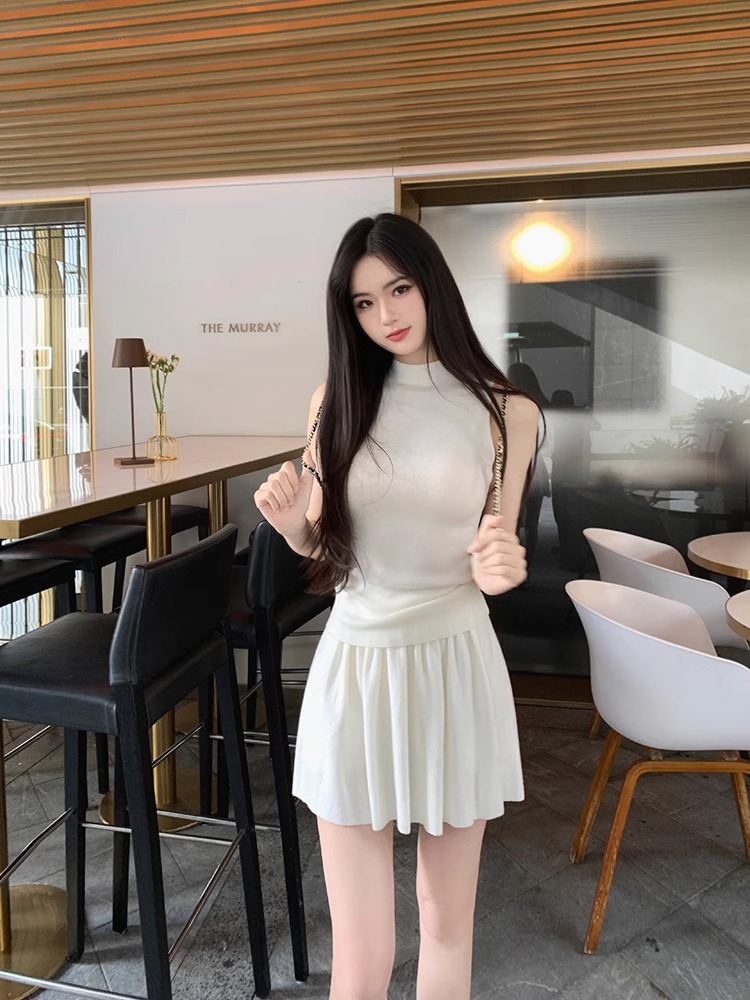 패션 세트 2024 여름 새로운 순수 디자인 센스 타이트 허리 슬리밍 니트 짧은 스커트 투피스 세트