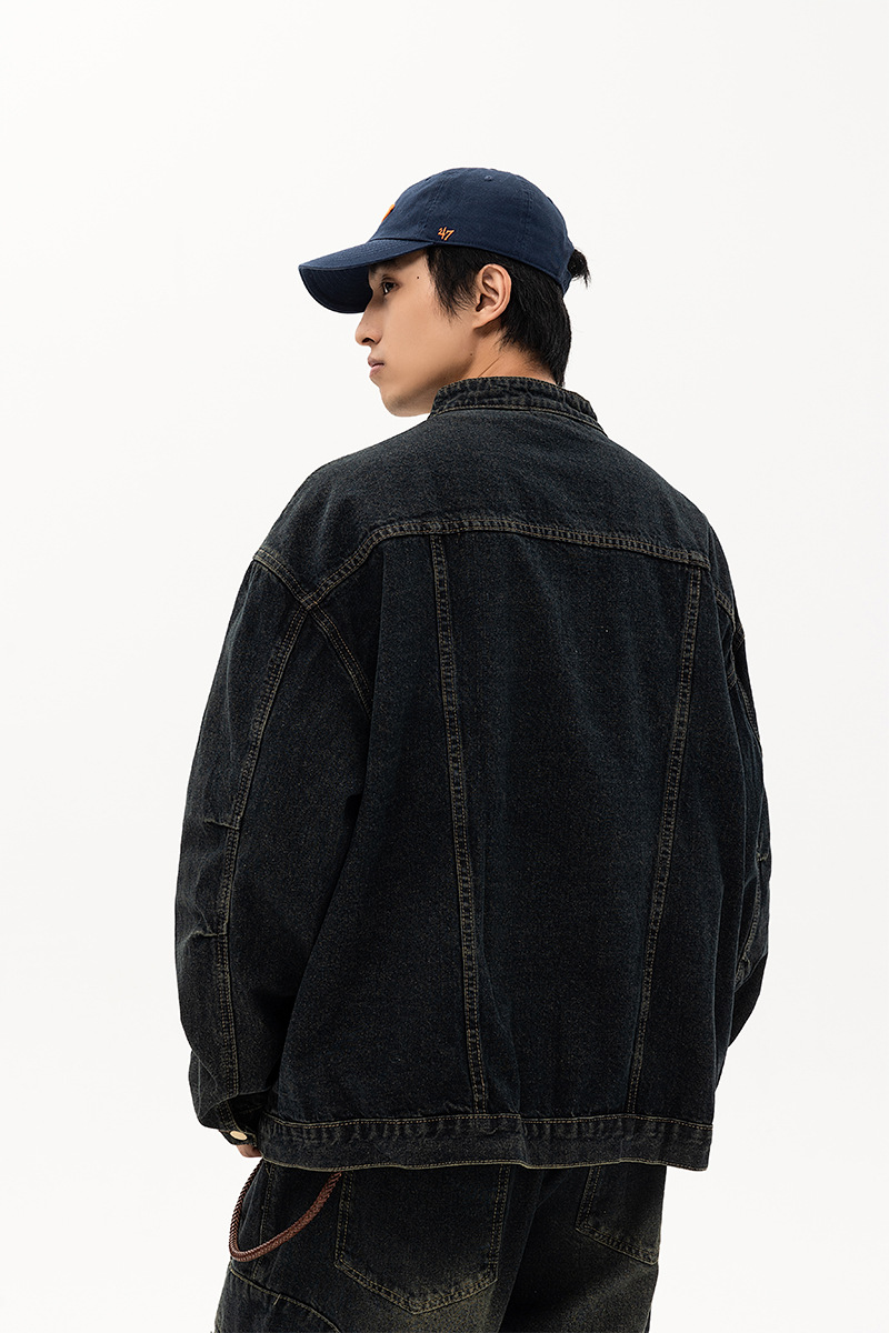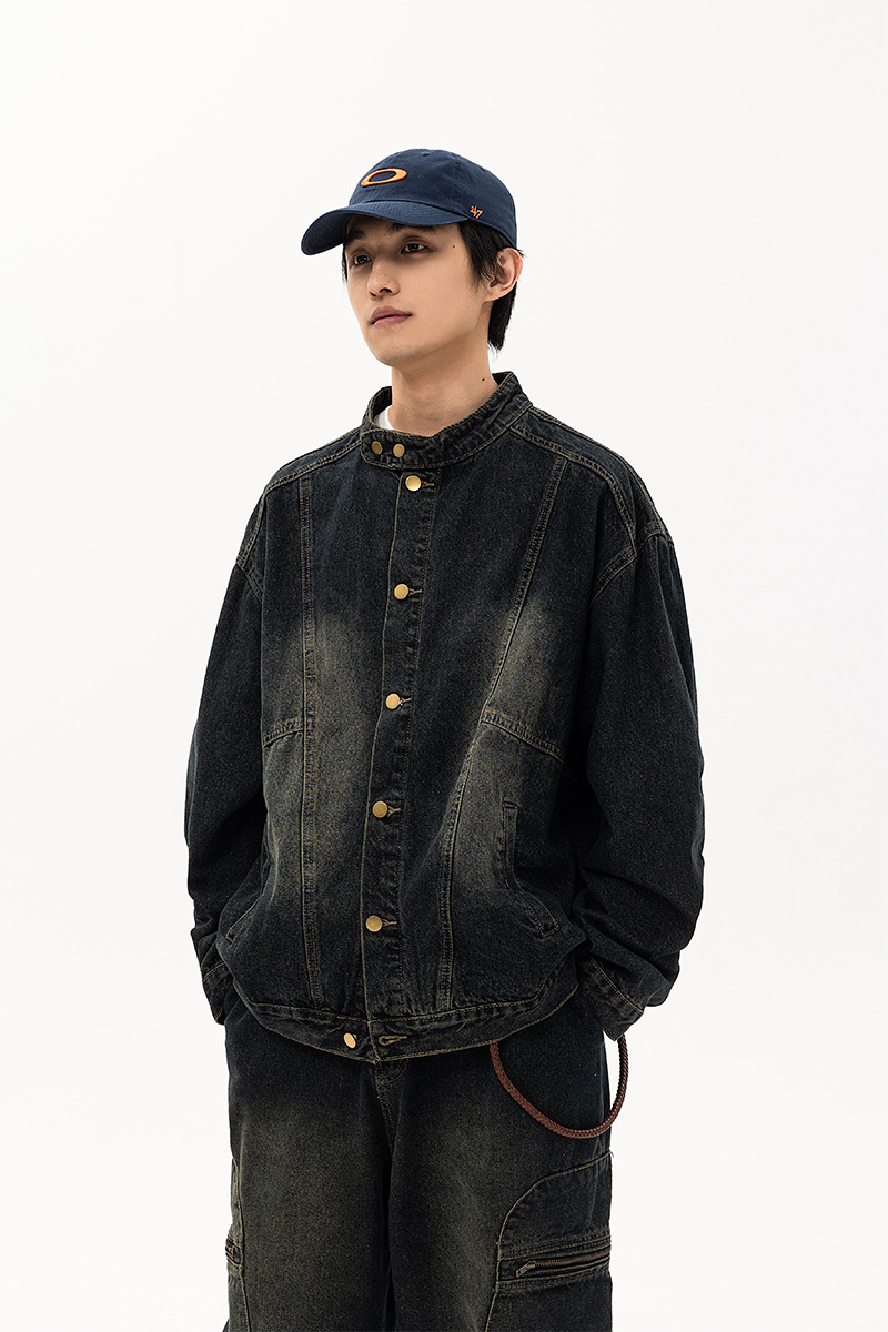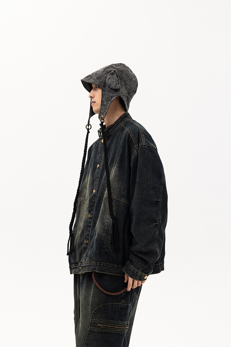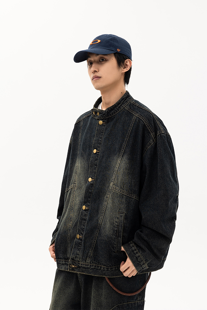 ATBORDER2024 봄과 가을 새로운 일본 빈티지 오래 된 데님 재킷 남자 유니섹스 루즈 재킷스토어 가기