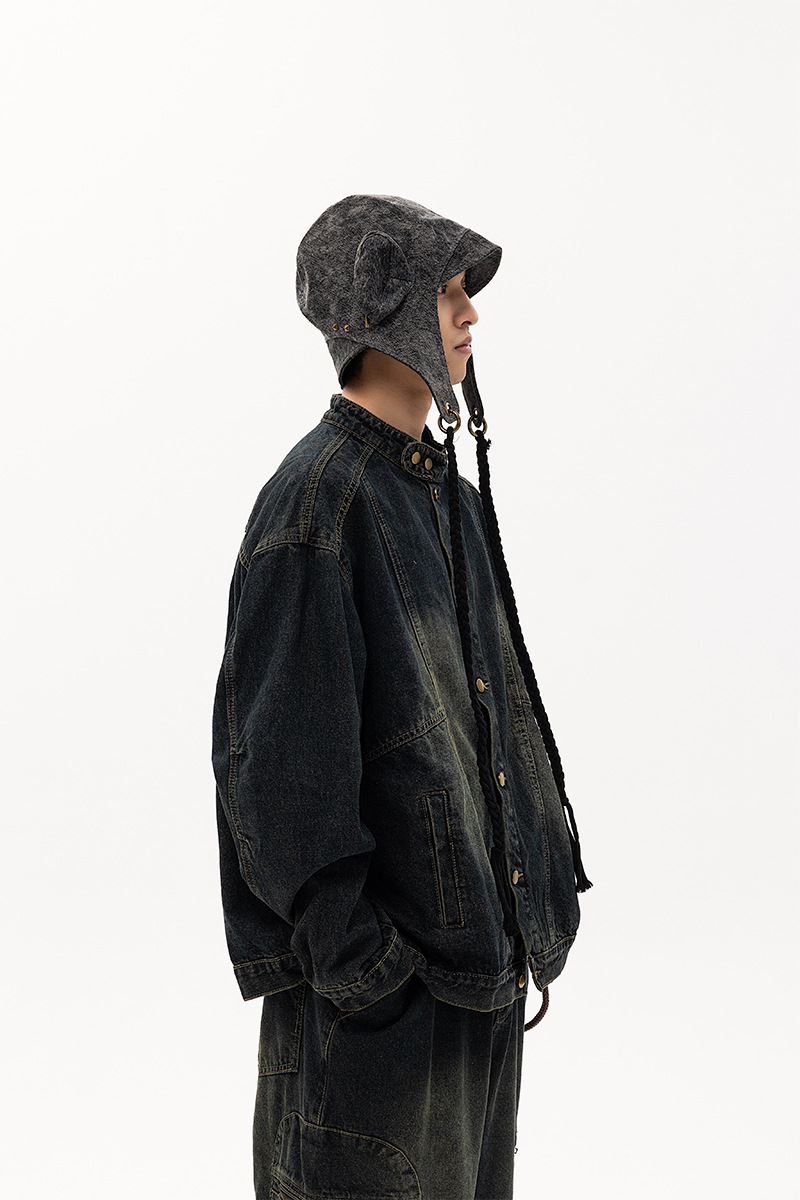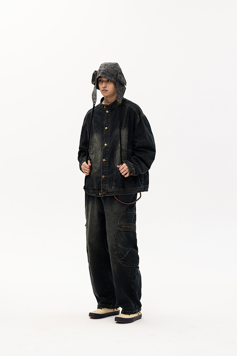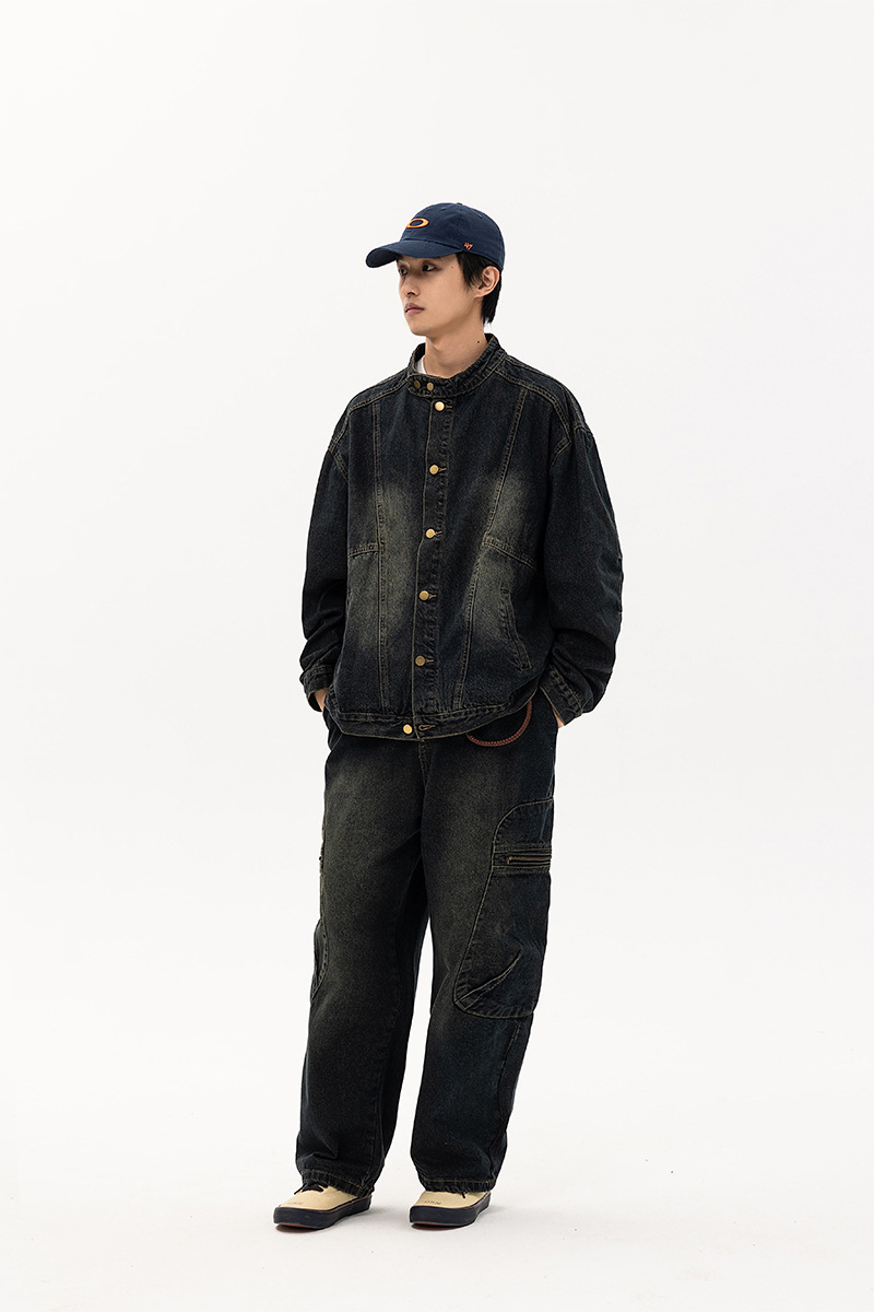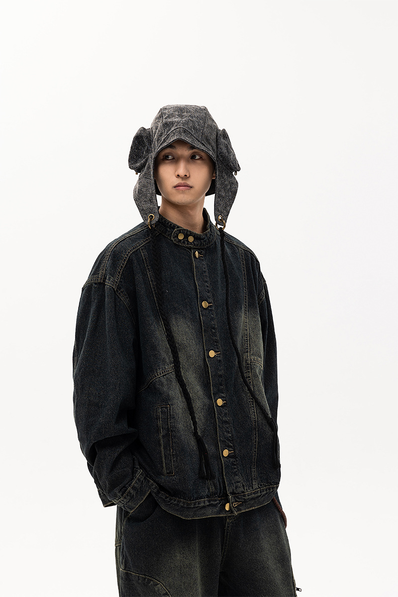 ATBORDER2024 봄과 가을 새로운 일본 빈티지 오래 된 데님 재킷 남자 유니섹스 루즈 재킷스토어 가기