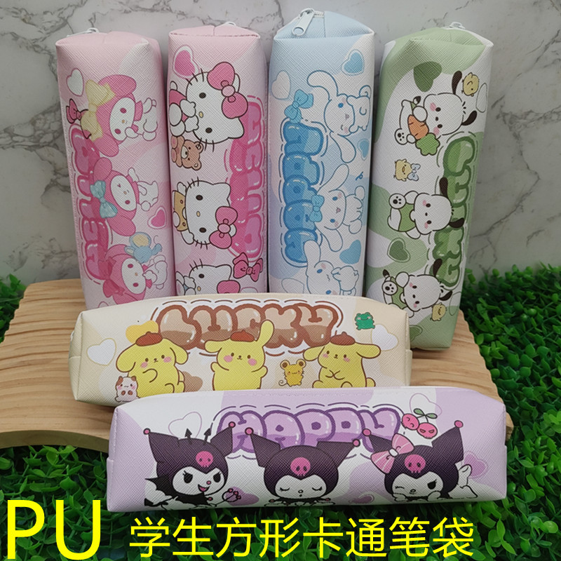 초등학교 학생을위한 산리오 만화 연필 케이스 쓰기 케이스 귀여운 대용량 연필 케이스 PU 방수 어린이 보관 가방