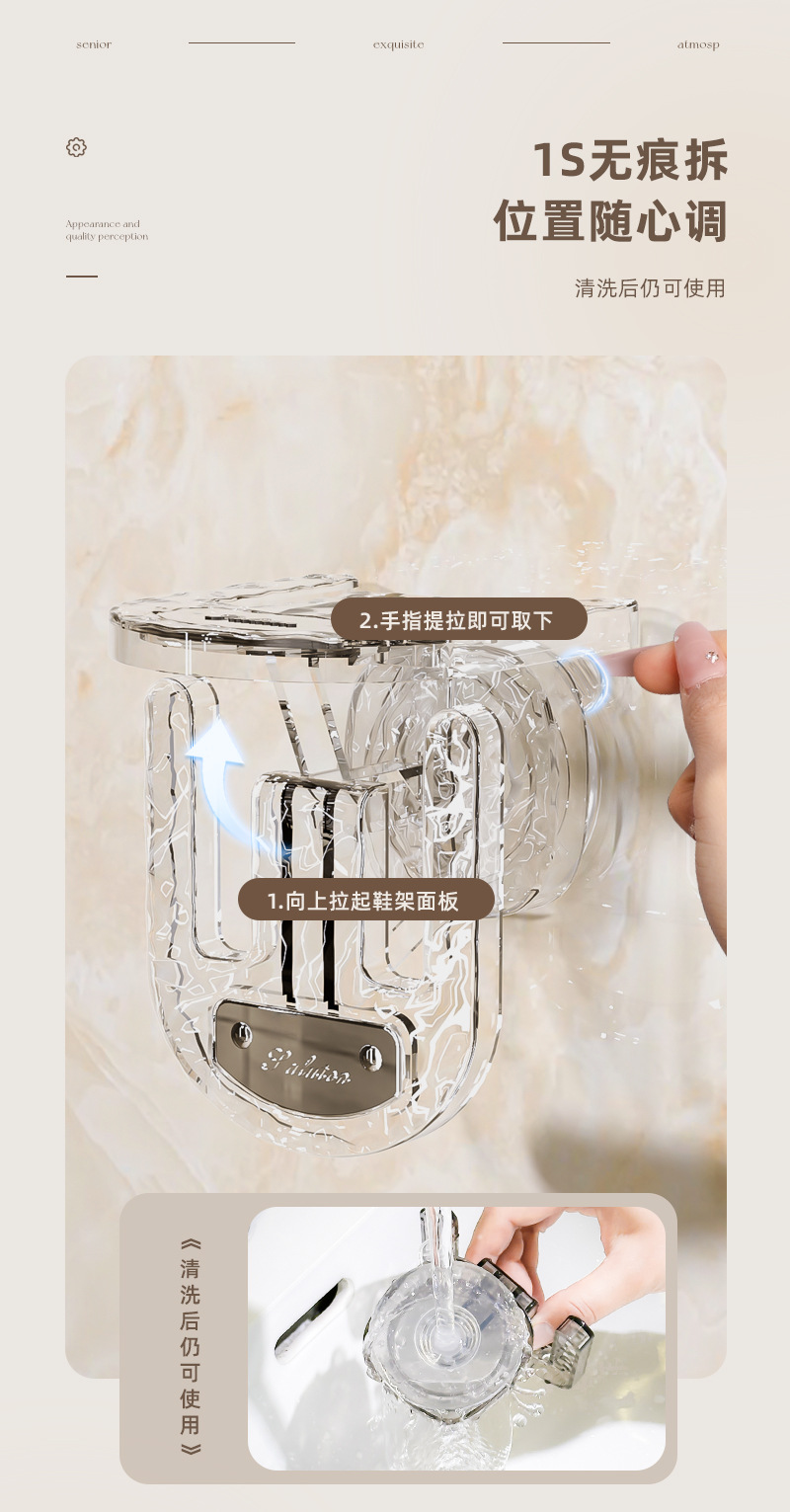 석션 컵 슬리퍼 랙 욕실 펀치없는 화장실 후크 벽걸이 신발 저장 보관 드레인 랙