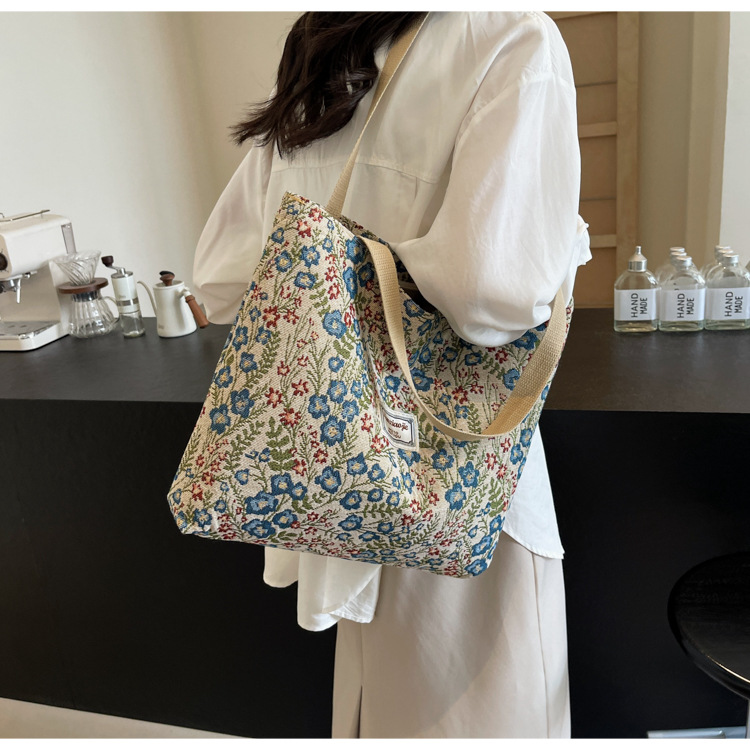 대용량 캔버스 가방 2024 새로운 유행 패션 다목적 어깨 핸드백 ins 학생 클래스 가방 여성스토어 가기