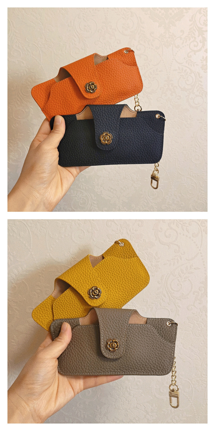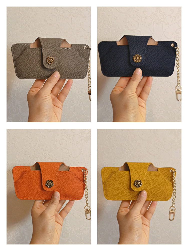 리치 패턴 빈티지 여성용 안경 가방 정품 가죽 편리한 조각 안경 체인 가방