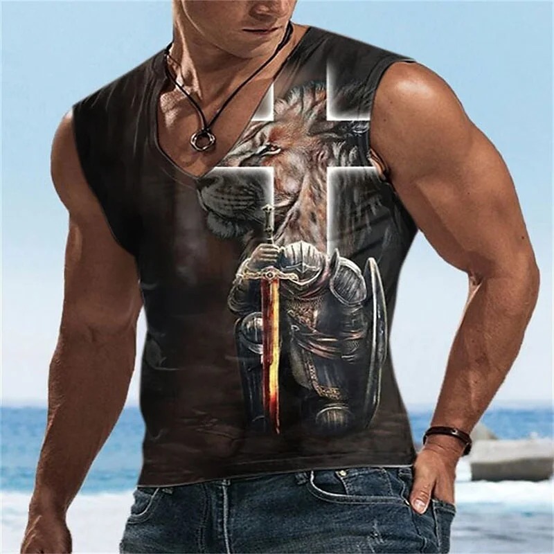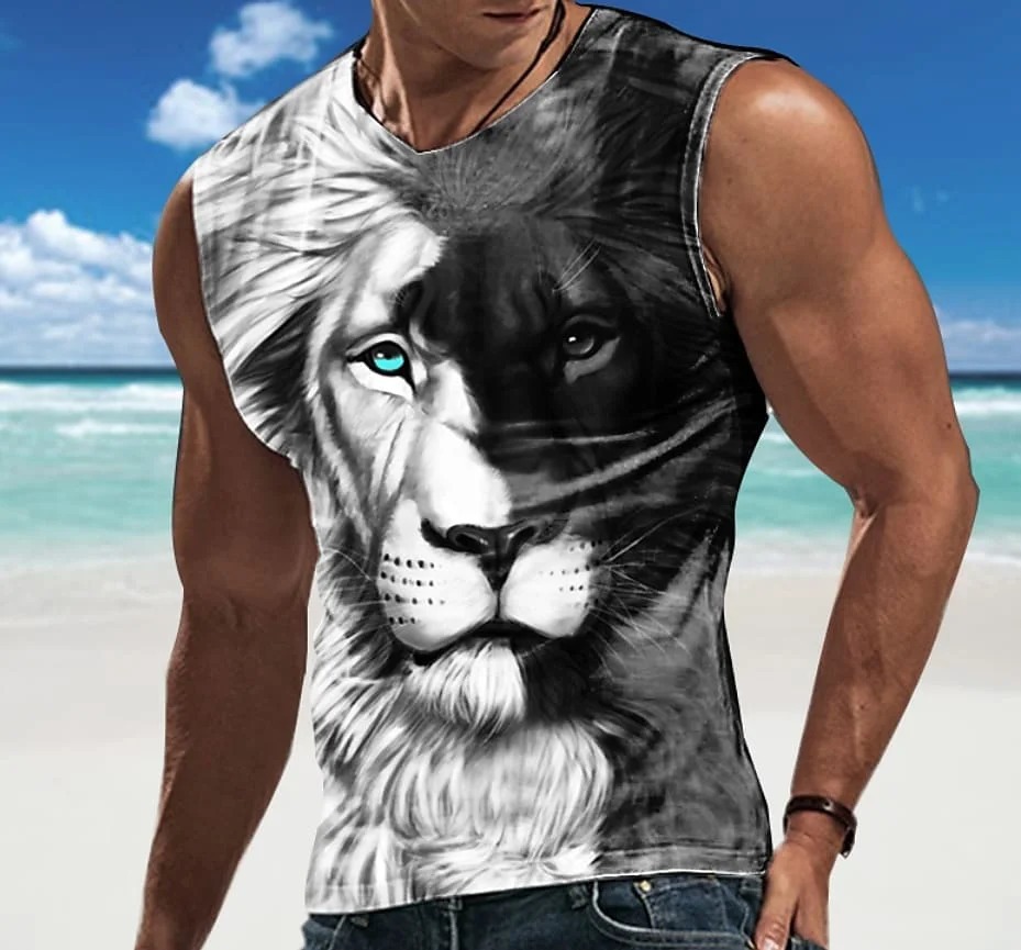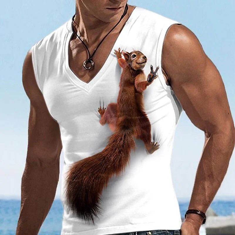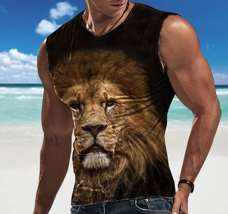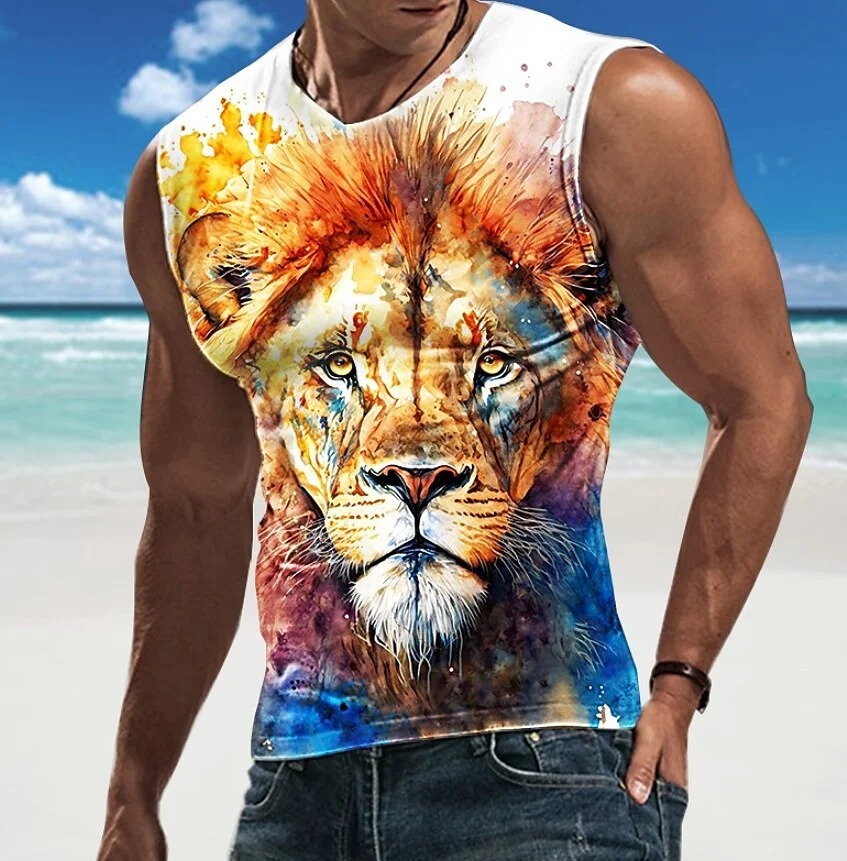 남성용 로우 칼라 민소매 V-Neck 티셔츠 남성용 여름 퓨어 코튼 스포츠 피트니스 조끼 타이거 프린트 트렌디 솔리드 컬러 WN12스토어 가기