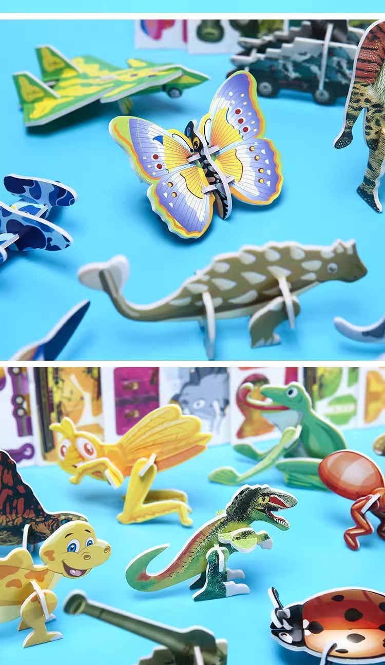 3D 재미있는 곤충 공룡 스테레오 퍼즐 창조적 인 DIY 장난감 유치원 오프닝 상 선물 어린이 퍼즐