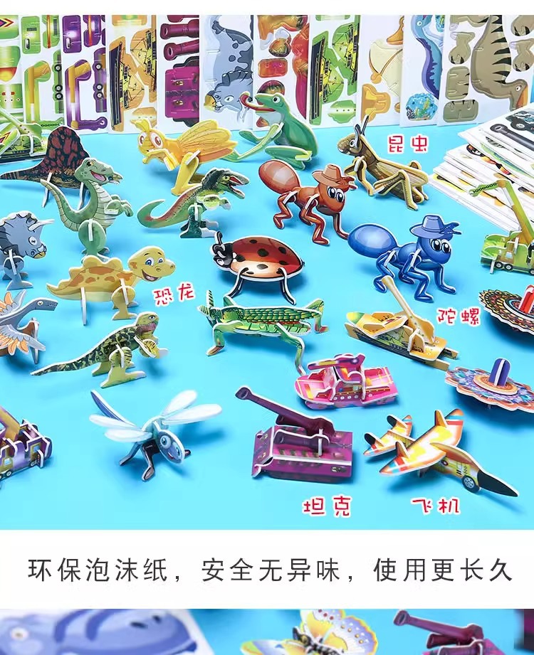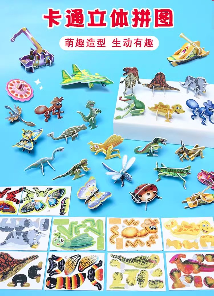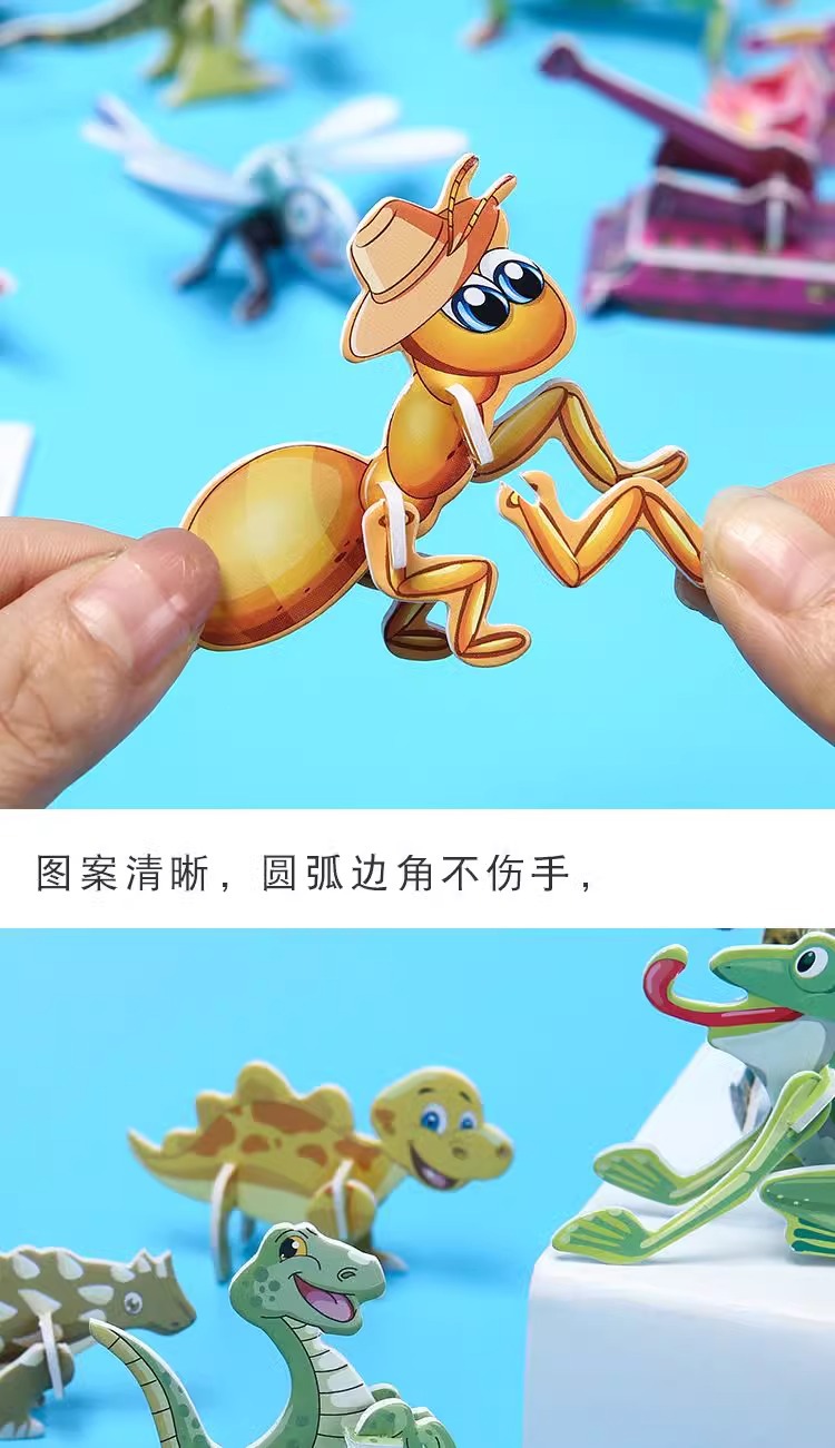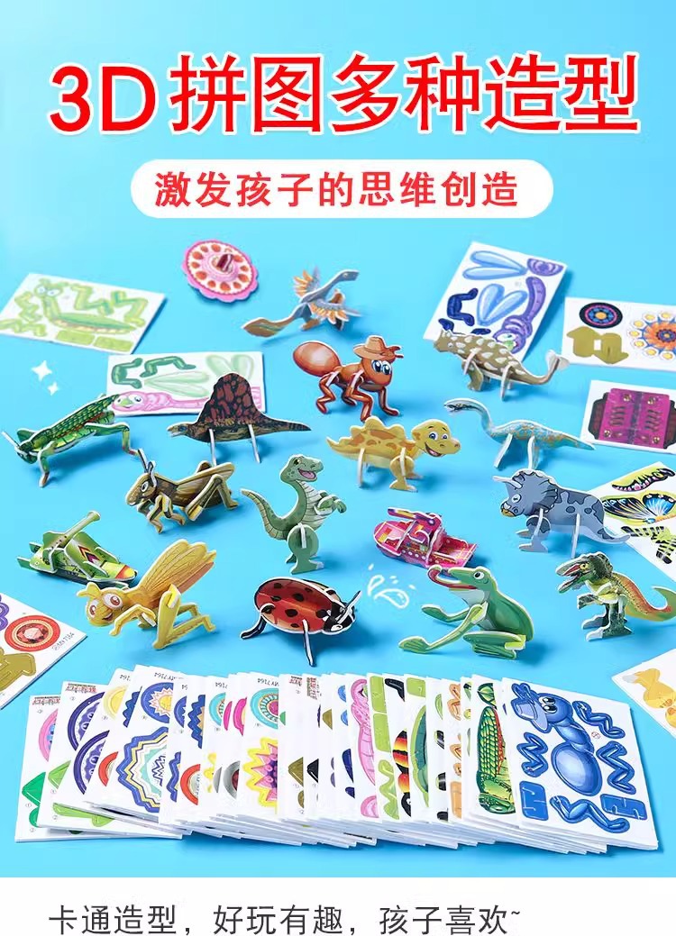 3D 재미있는 곤충 공룡 스테레오 퍼즐 창조적 인 DIY 장난감 유치원 오프닝 상 선물 어린이 퍼즐스토어 가기