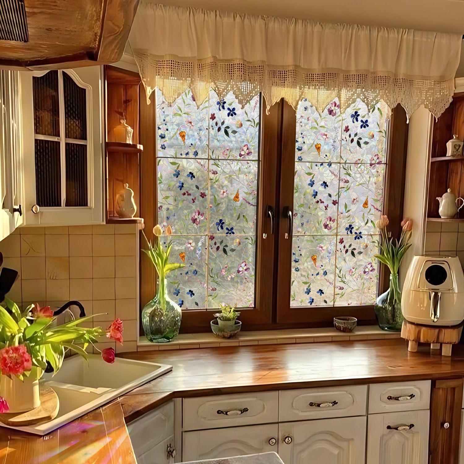 Funlife 수채화 꽃과 식물 레이저 창 스티커 고화질 투명 불투명 PVC 멀티 사이즈 정전기 창 스티커 SE827