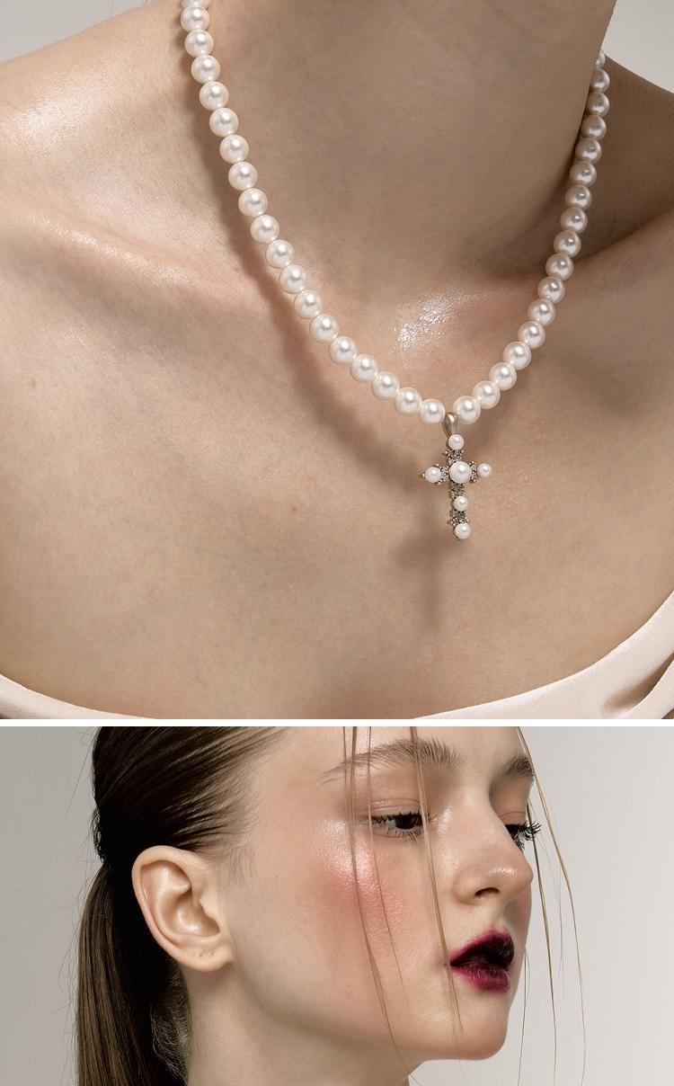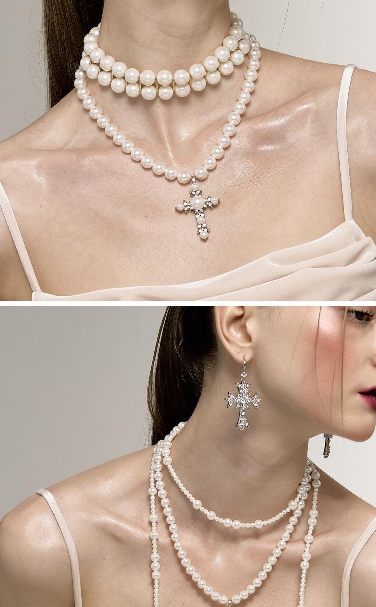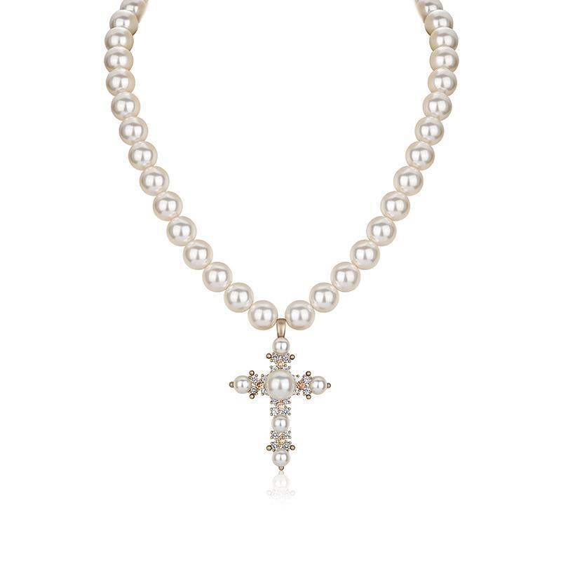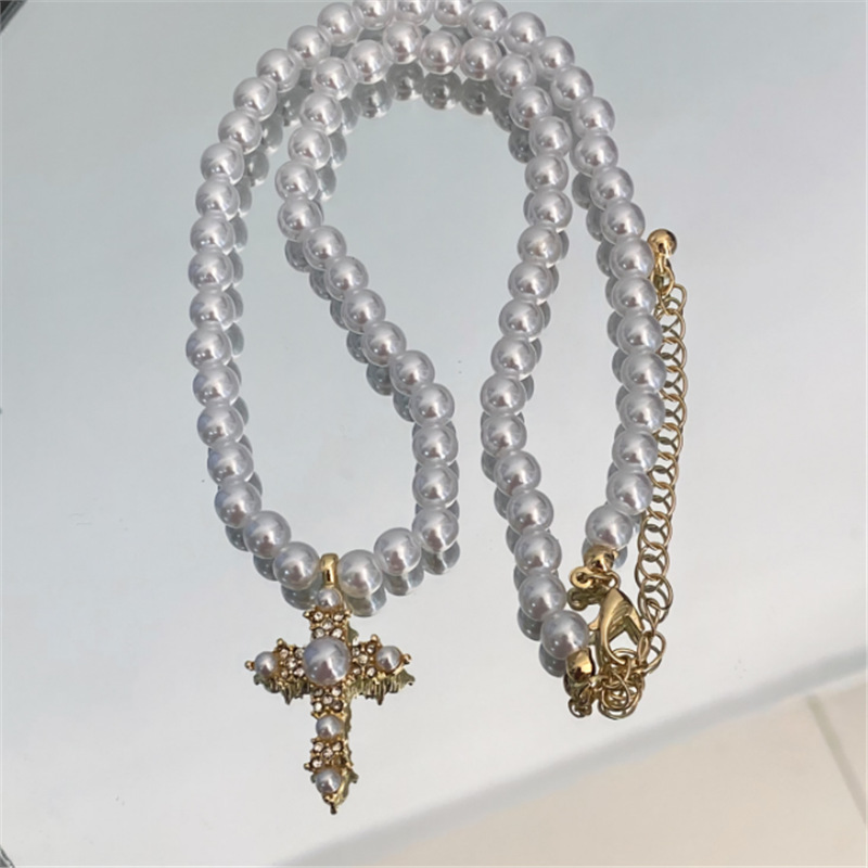 새로운 남성과 여성의 빈티지 바로크 진주 크로스 목걸이/스웨터 체인스토어 가기