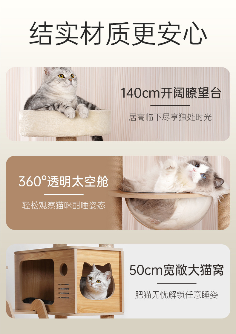 고양이 등반 랙 고양이 둥지 고양이 나무 통합 고양이 랙 고양이 나무 스크래치 나무 비 단단한 나무 공간 캡슐 등반 열 비 점유 고양이 장난감