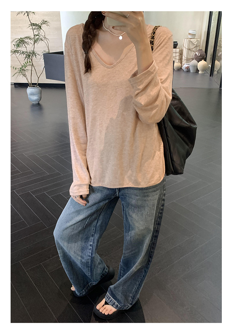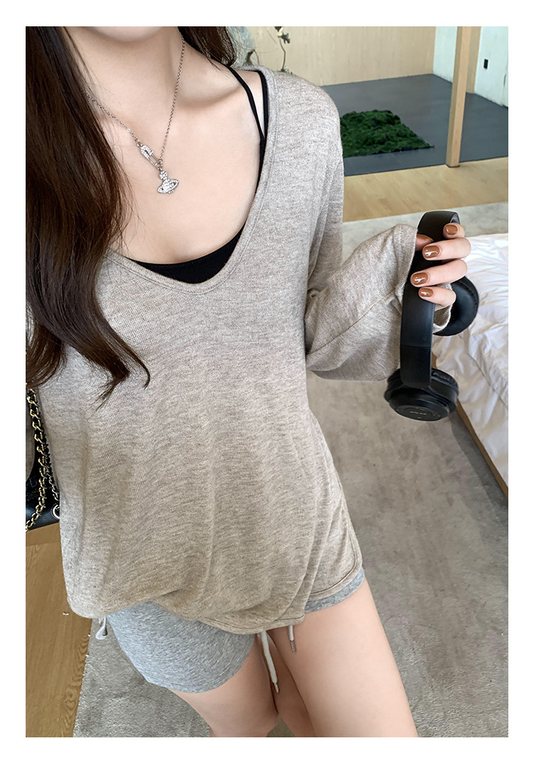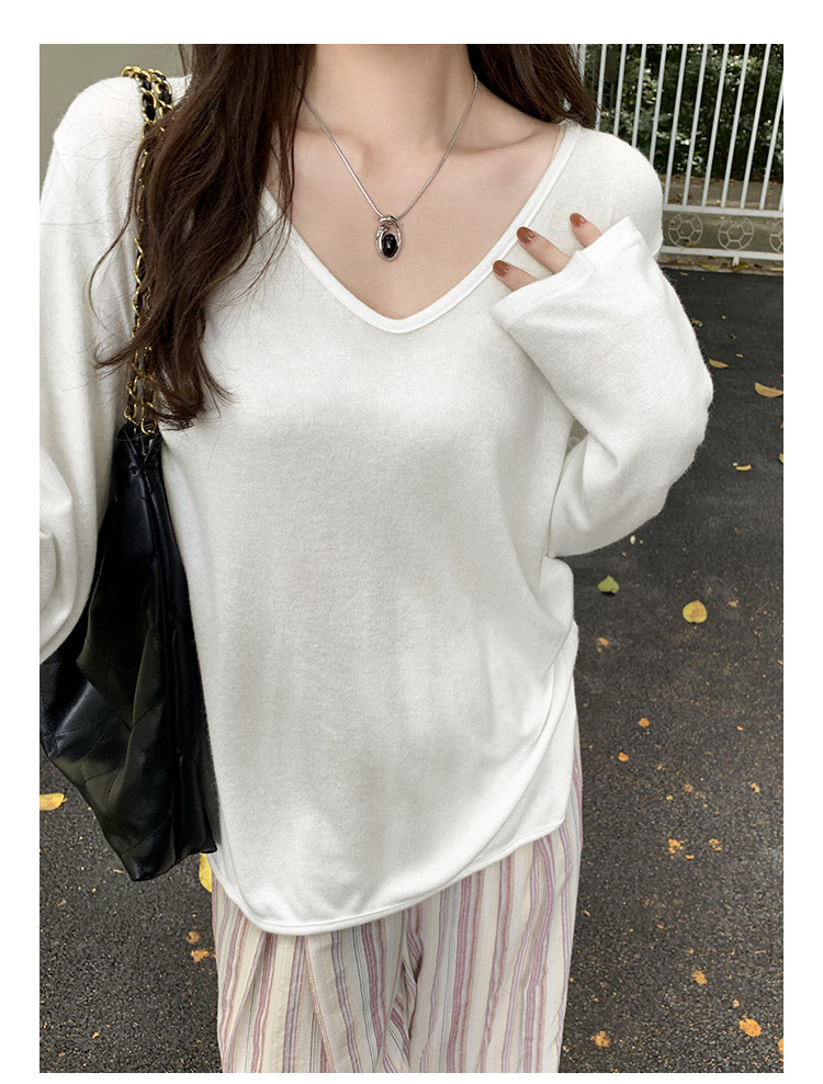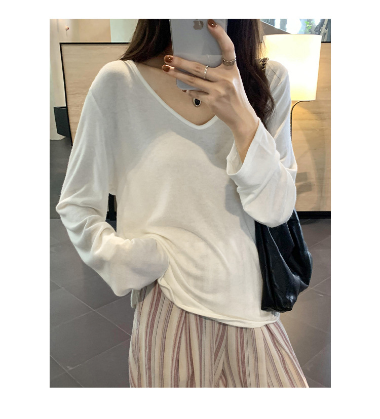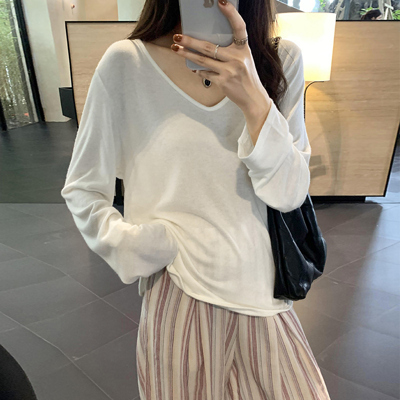 한국식 V넥 얇은 긴팔 스웨터 여성의 여름 새로운 느슨한 슬리밍 게으른 휴식 태양 방지 에어컨 셔츠