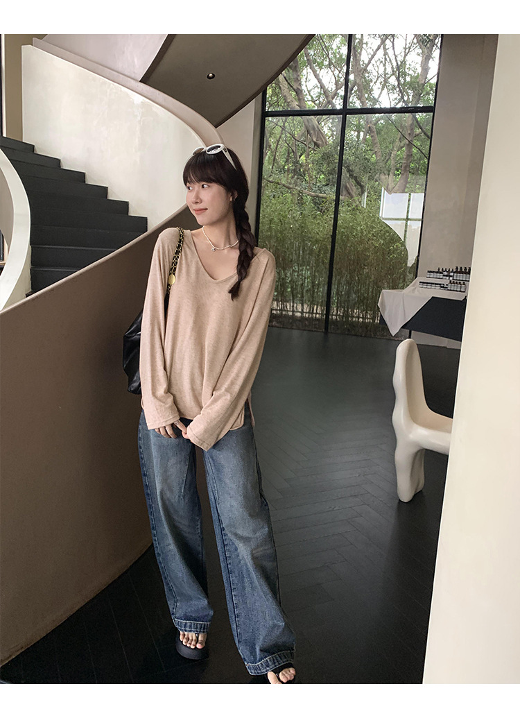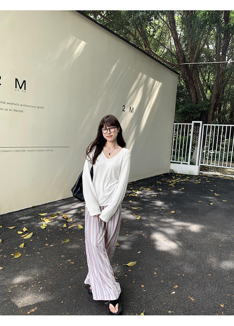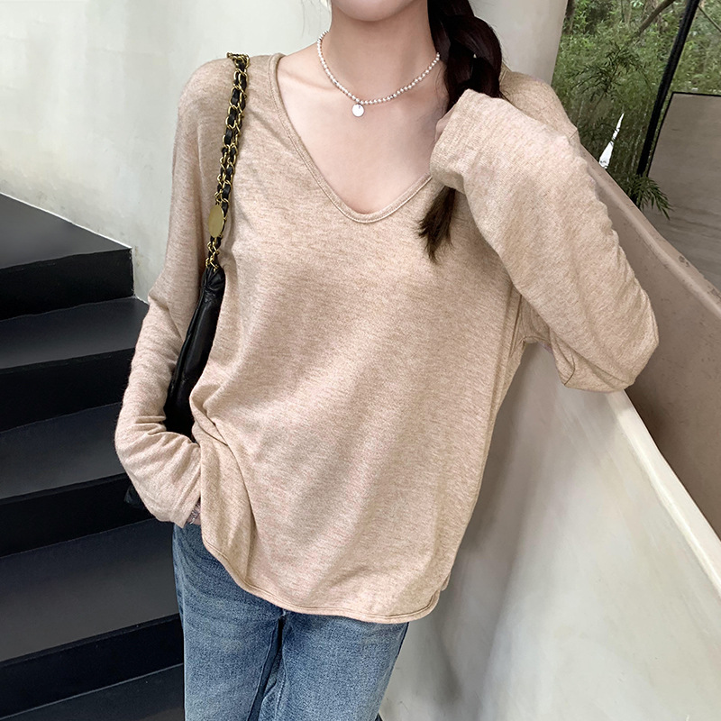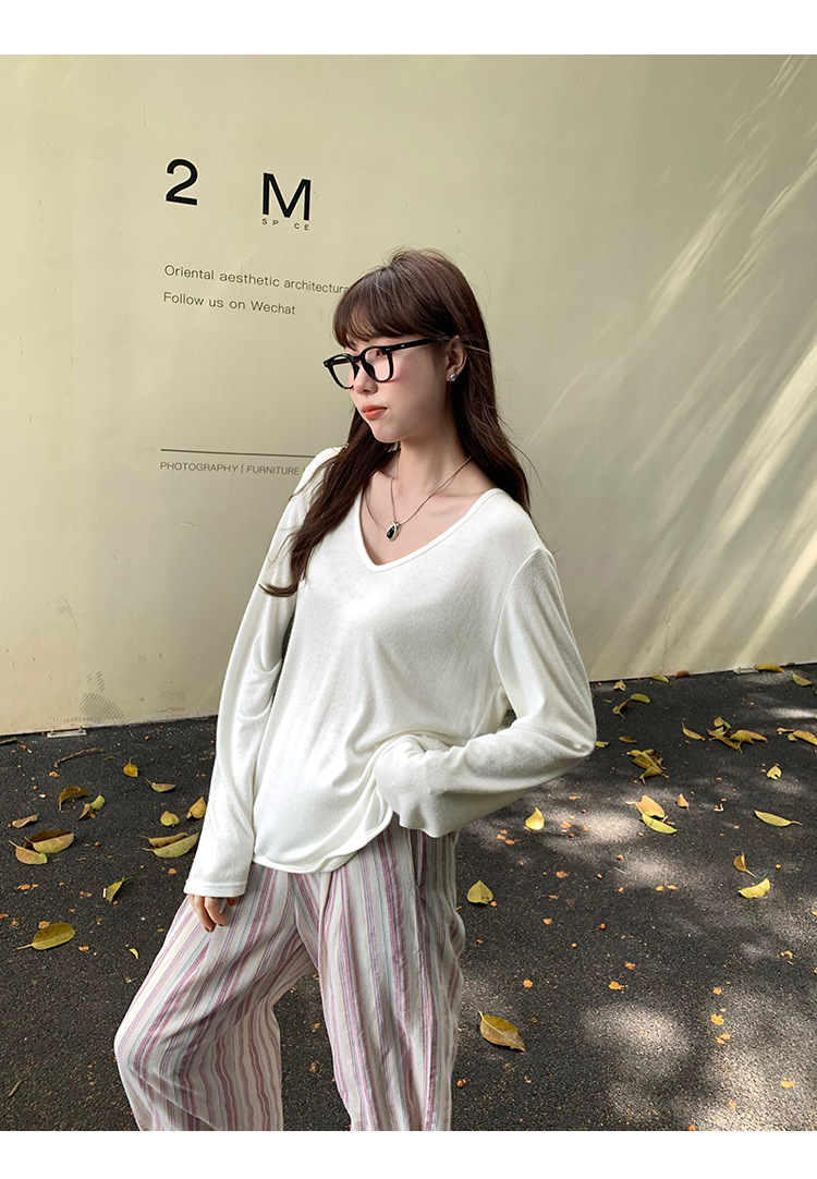 한국식 V넥 얇은 긴팔 스웨터 여성의 여름 새로운 느슨한 슬리밍 게으른 휴식 태양 방지 에어컨 셔츠