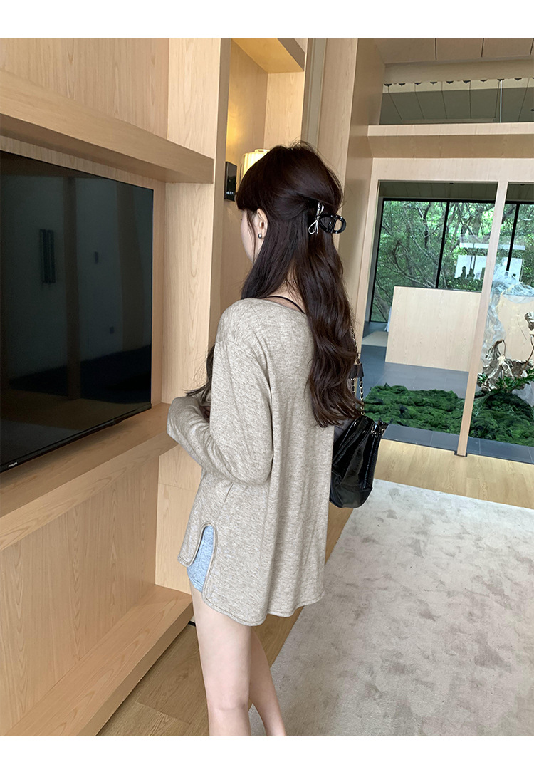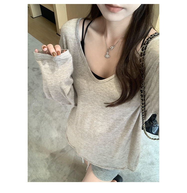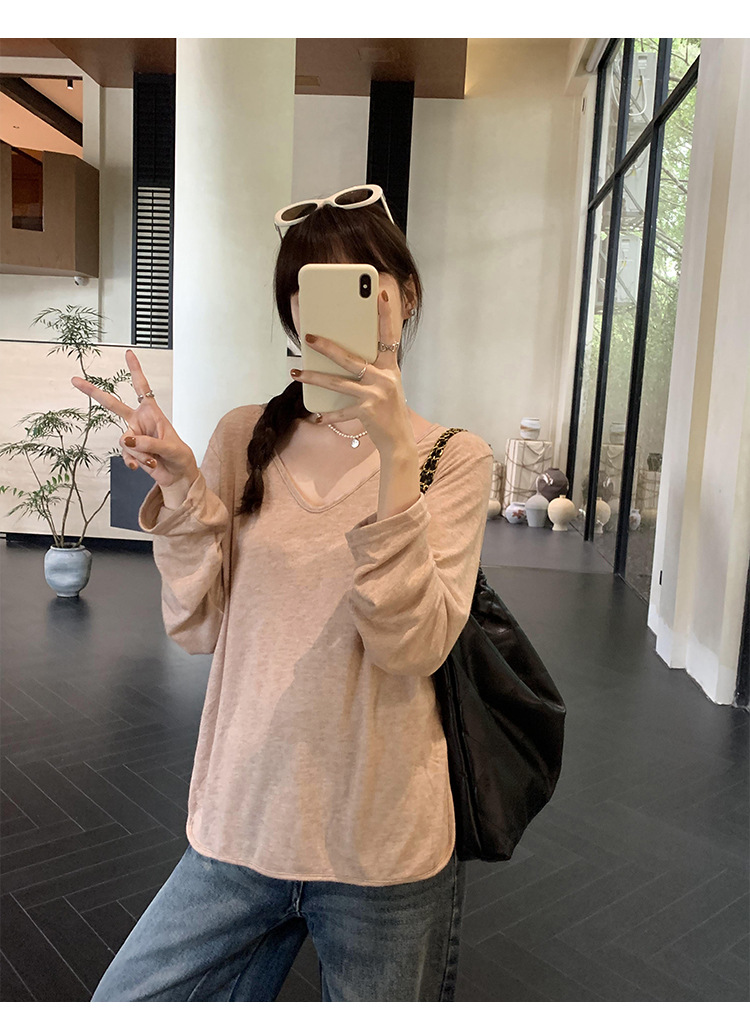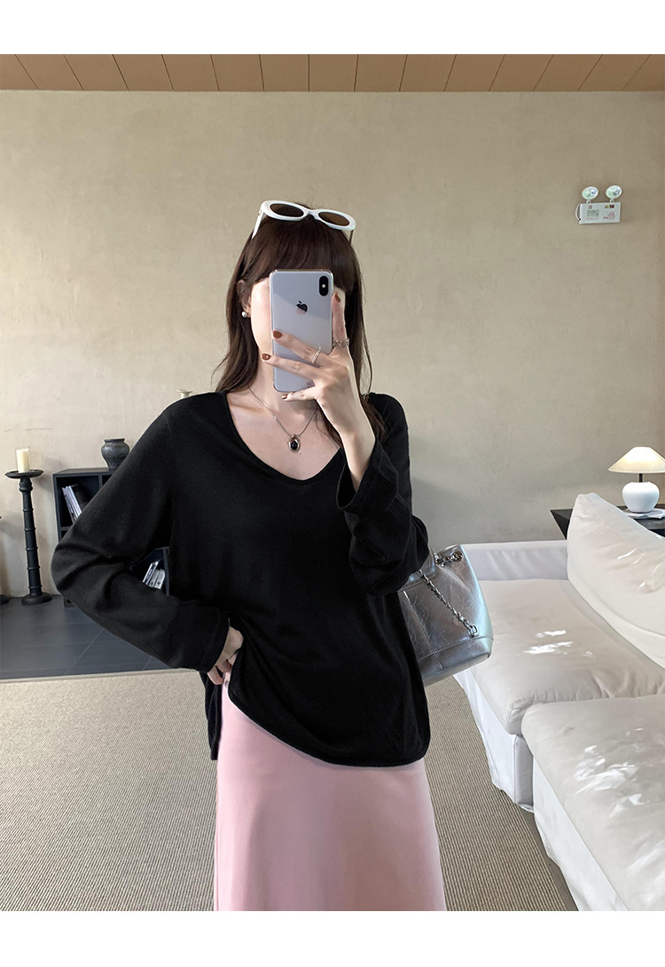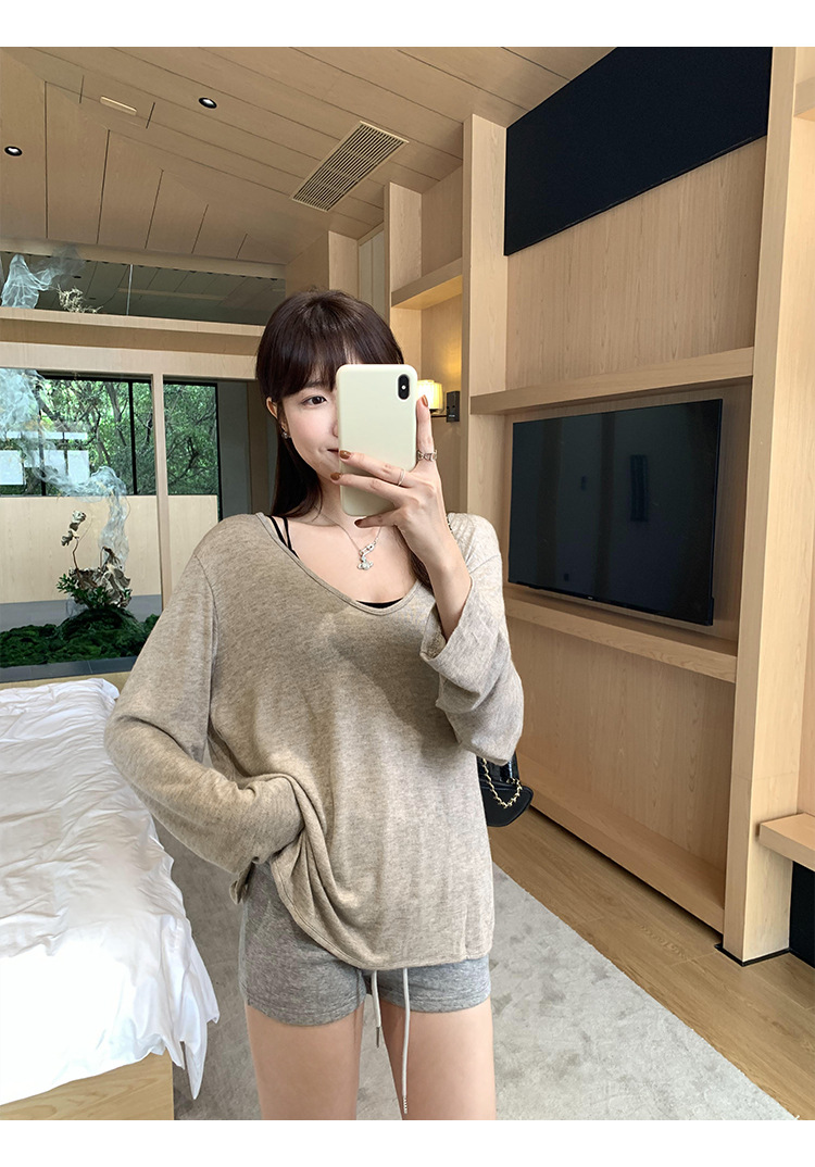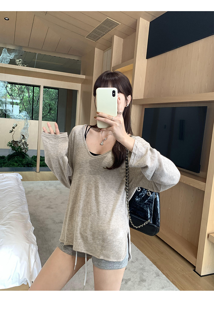 한국식 V넥 얇은 긴팔 스웨터 여성의 여름 새로운 느슨한 슬리밍 게으른 휴식 태양 방지 에어컨 셔츠스토어 가기