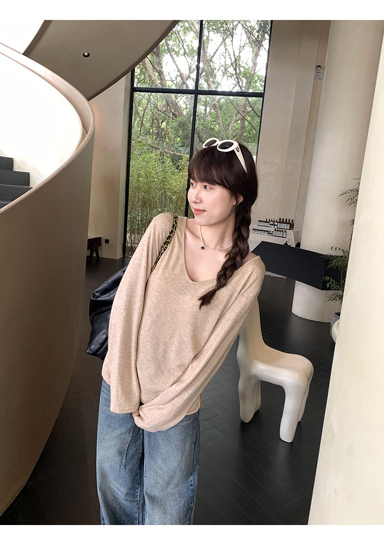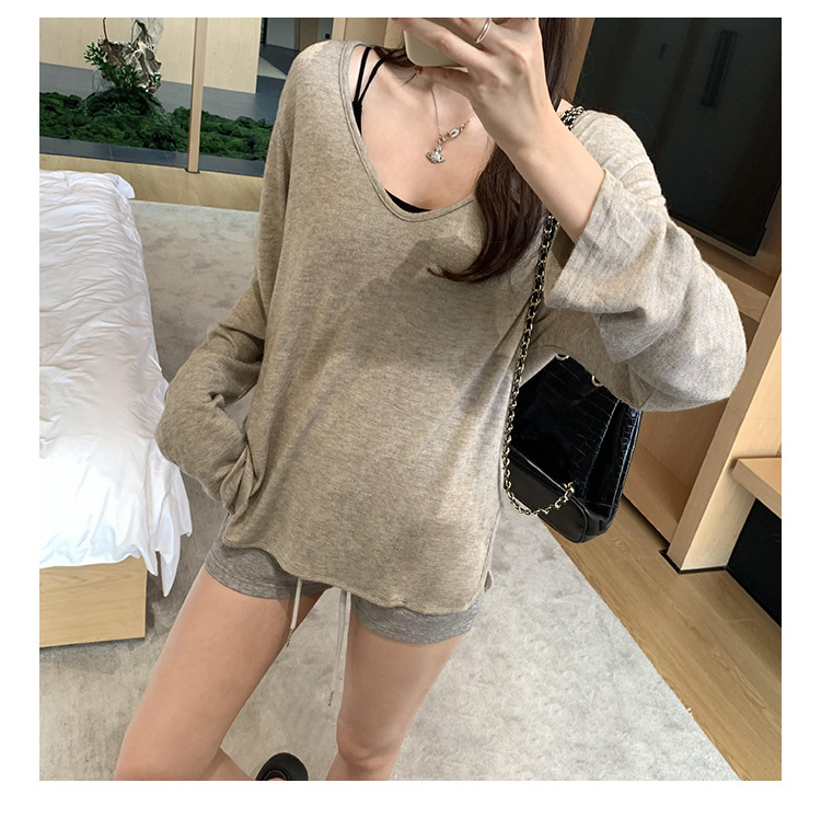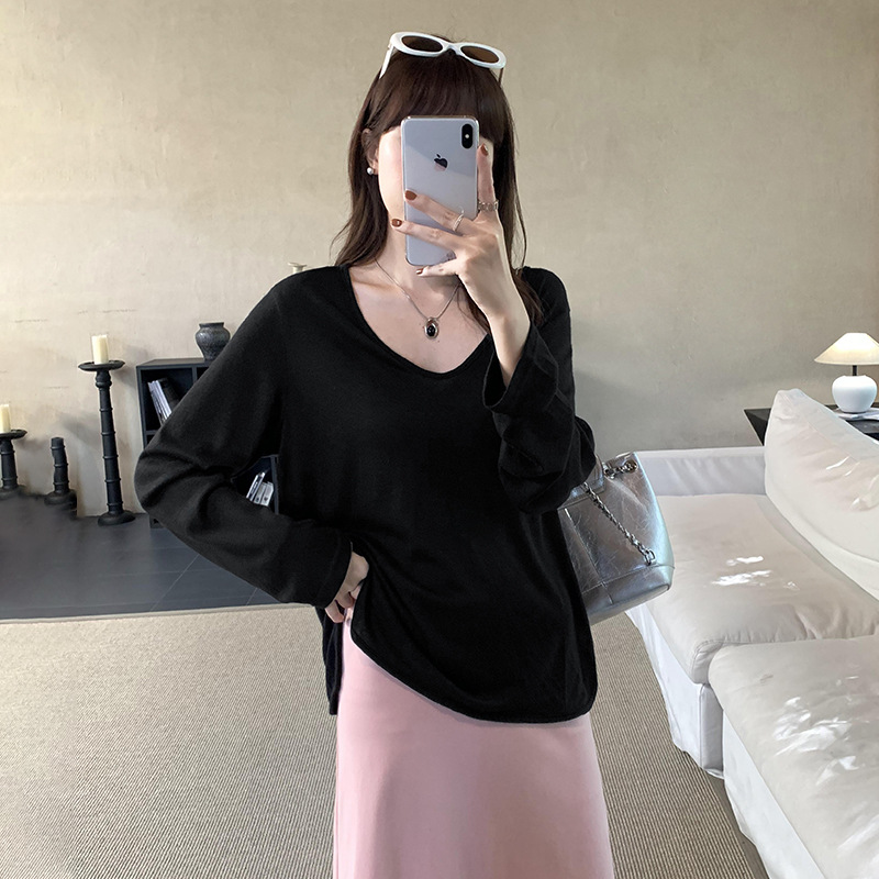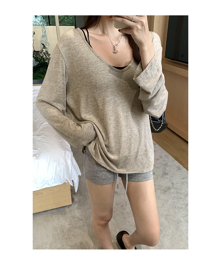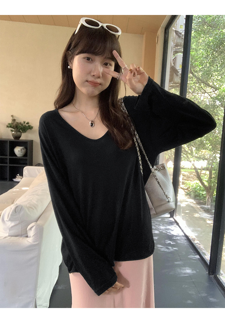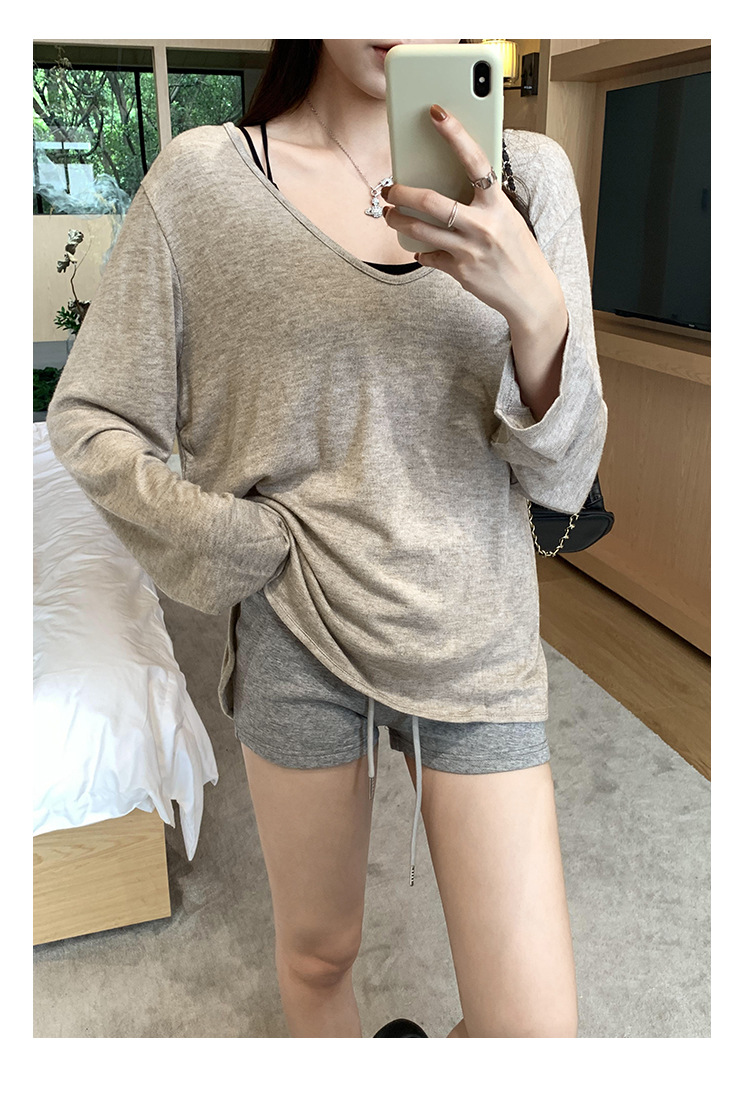 한국식 V넥 얇은 긴팔 스웨터 여성의 여름 새로운 느슨한 슬리밍 게으른 휴식 태양 방지 에어컨 셔츠스토어 가기