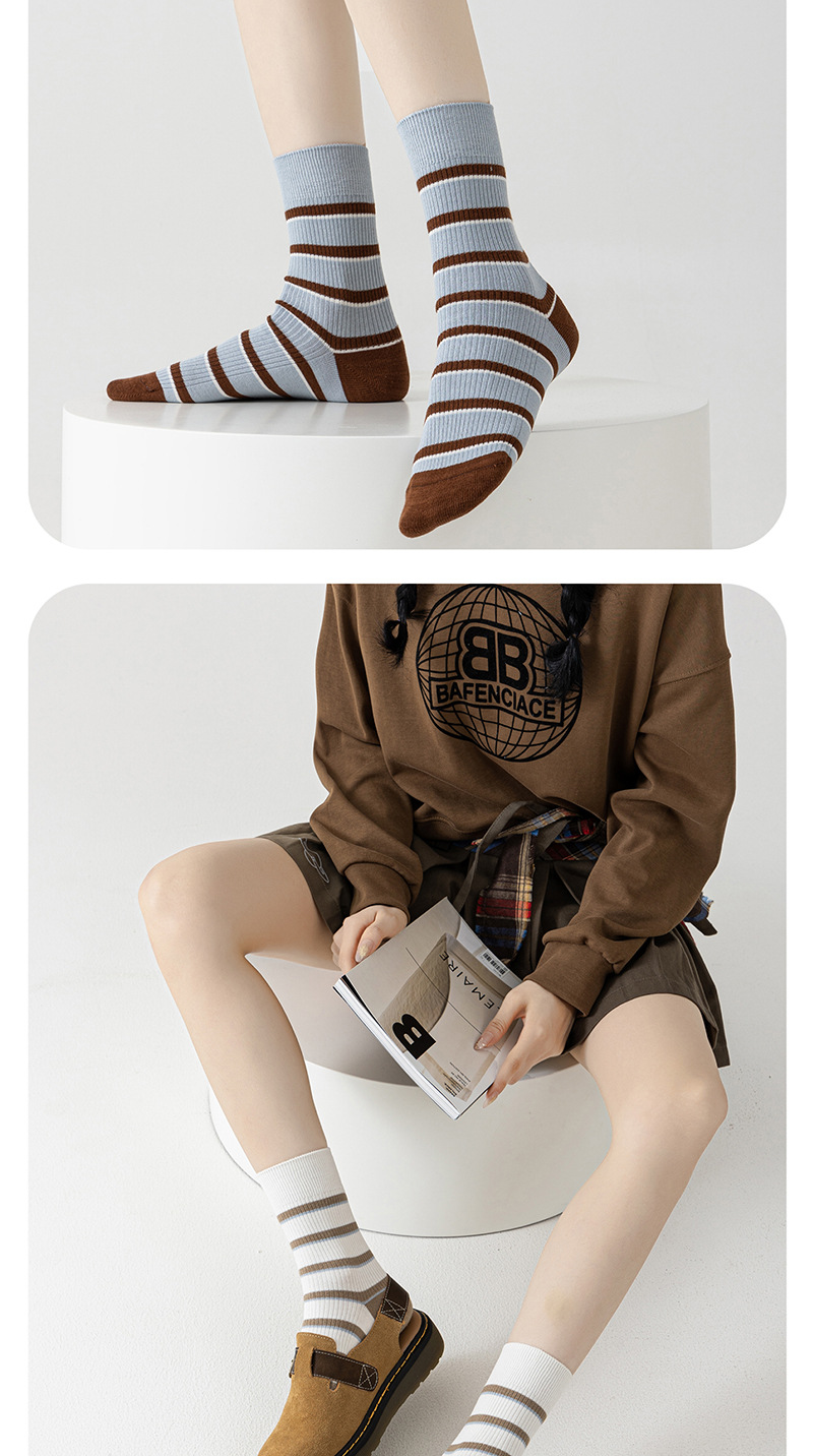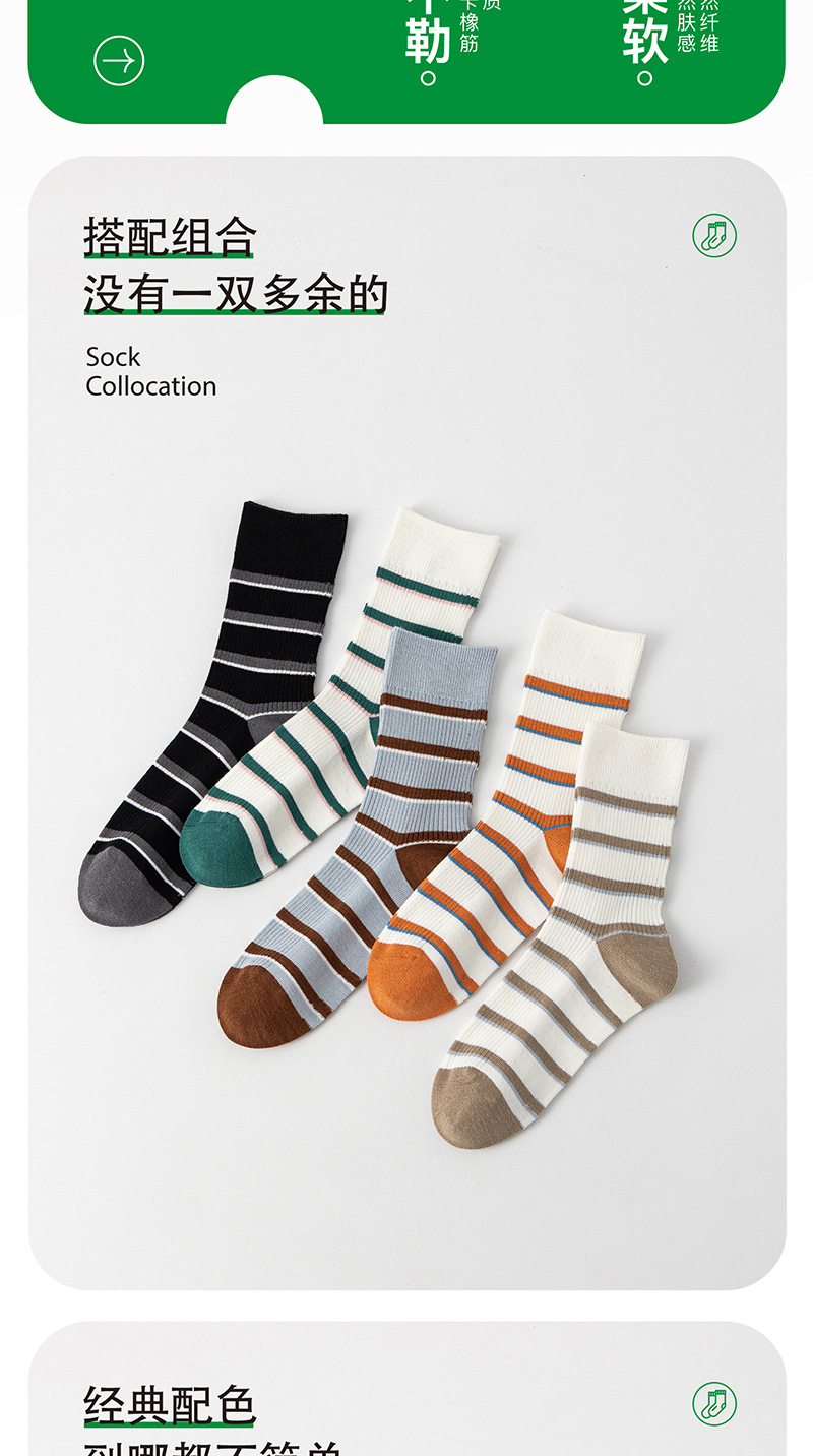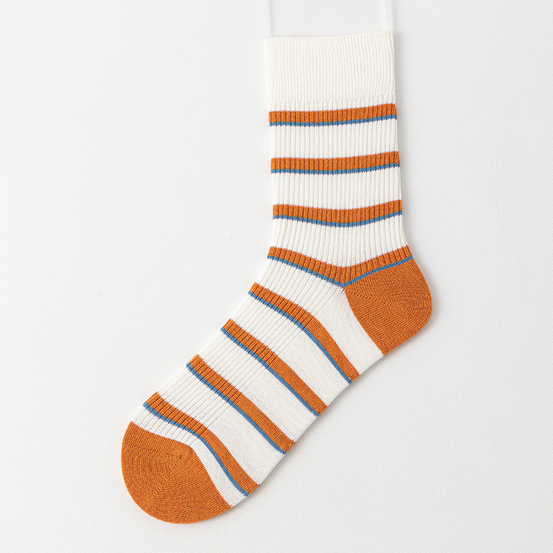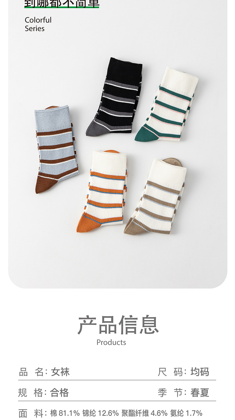 양말 여성의 캐주얼 중간 배럴 대비 컬러 스트라이프 안티 필링 코튼 양말 일본 스타일 수직 높은 고무 스트랜드 대학 스타일 통기성 양말스토어 가기