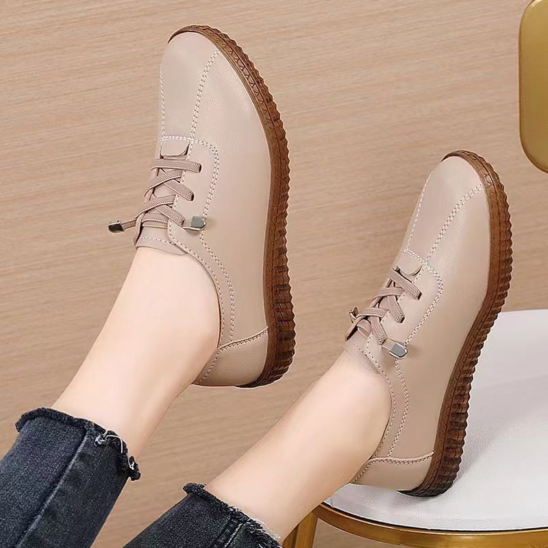 재고 부드러운 밑창 경량 싱글 레이어 신발 여성 쇠고기 밑창 캐주얼 올 매치 스포츠 중년 및 노인 어머니를위한 블랙 플랫 밑창 작업 신발스토어 가기