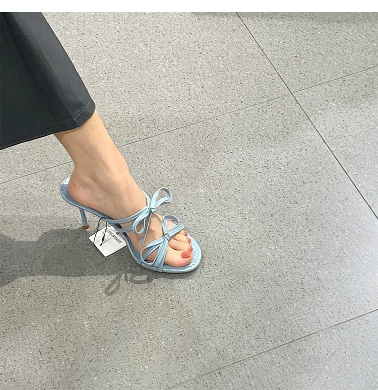 활 넥타이 얇은 힐 샌들 여자 24 개의 새로운 올 매치 블루 화이트 우아한 한 단어 하프 드래그 프렌치 오픈 발가락 하이힐스토어 가기