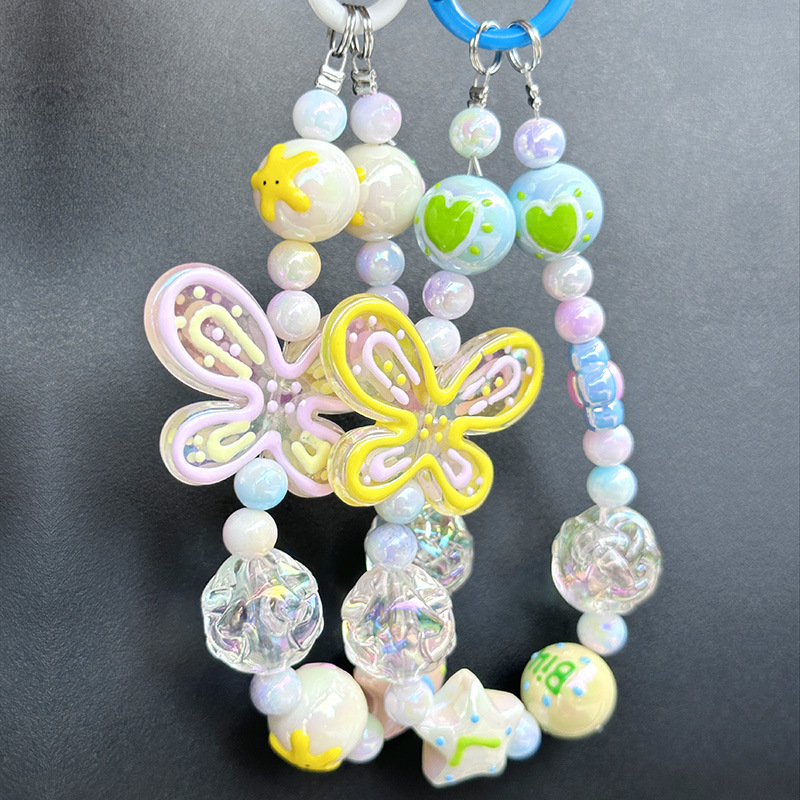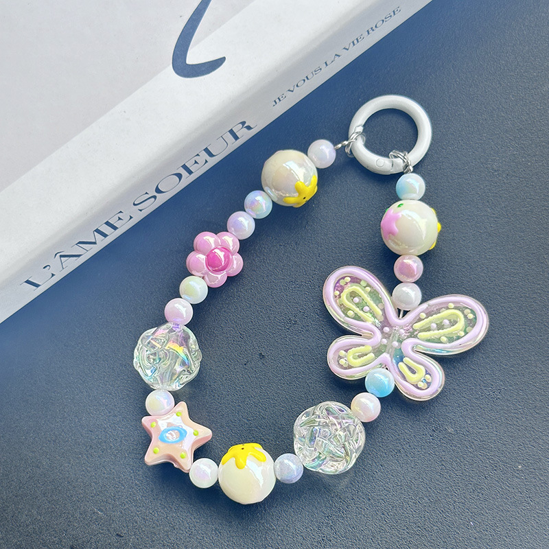 캔디 컬러 나비 휴대 전화 체인 라이브 방송 손으로 그린 구슬 구슬 체인 자동차 키 체인 이어폰 가방 장식품