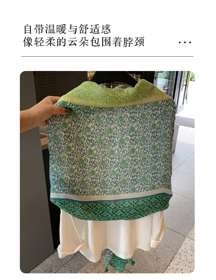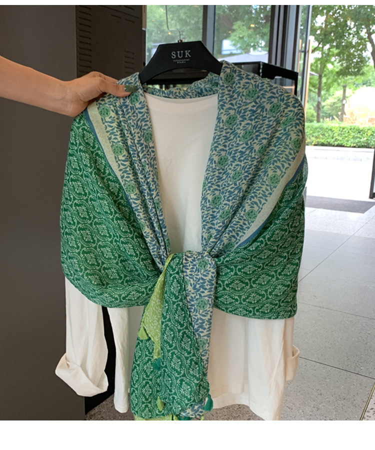 목가적 인 녹색과 노란색 색상 차단 면화 및 리넨 스카프 야외 여행 사진 스카프 실크 스카프 햇빛 선 스크린 목도리 이중 사용