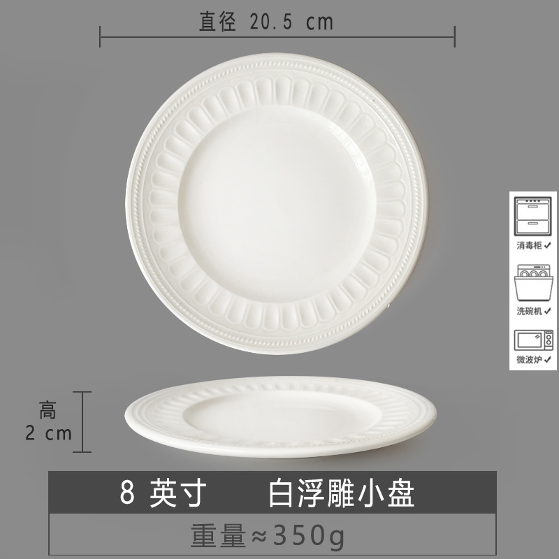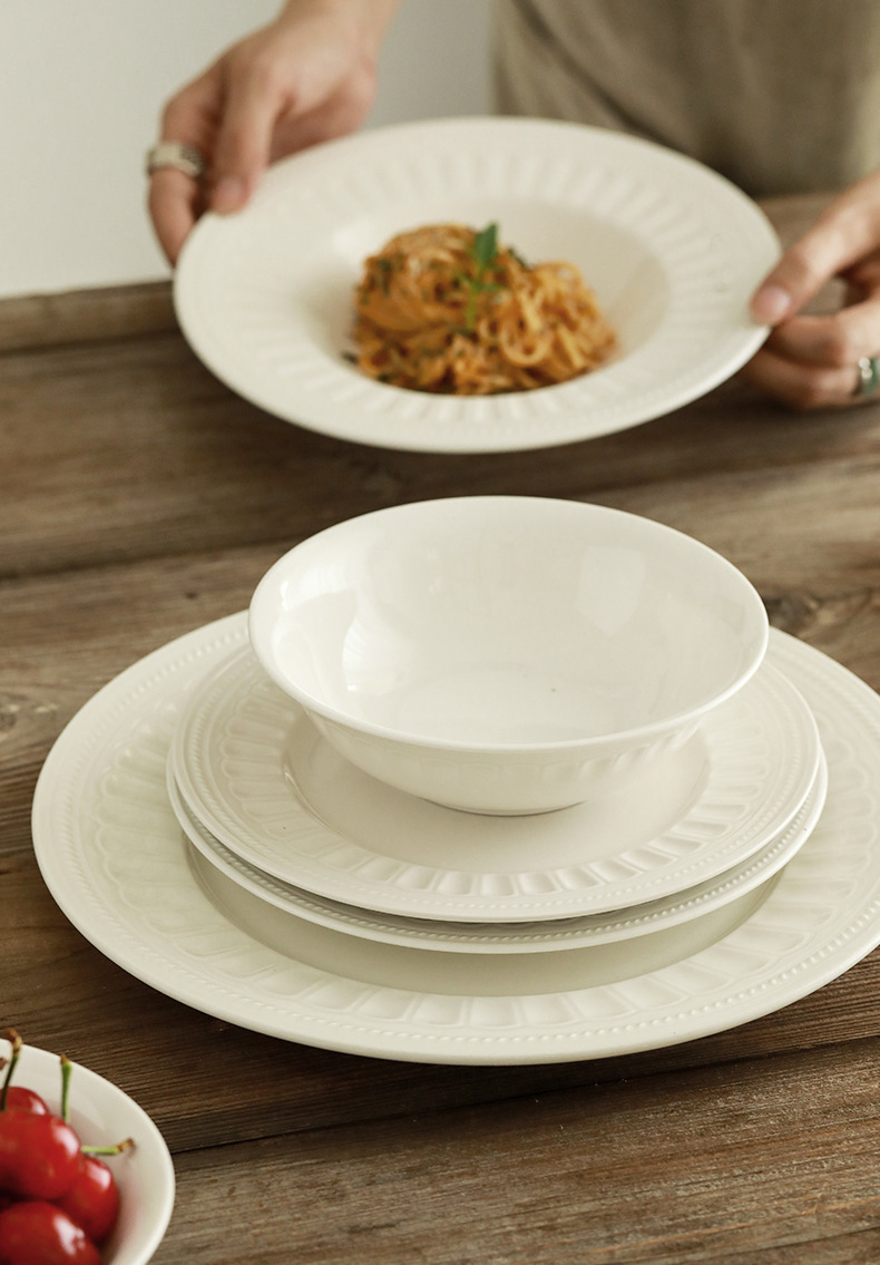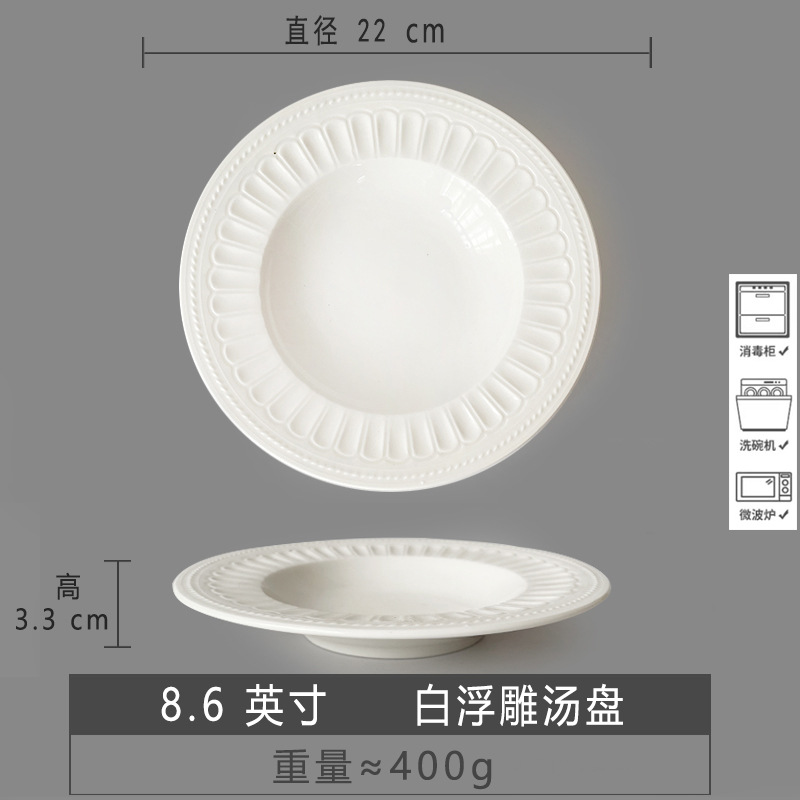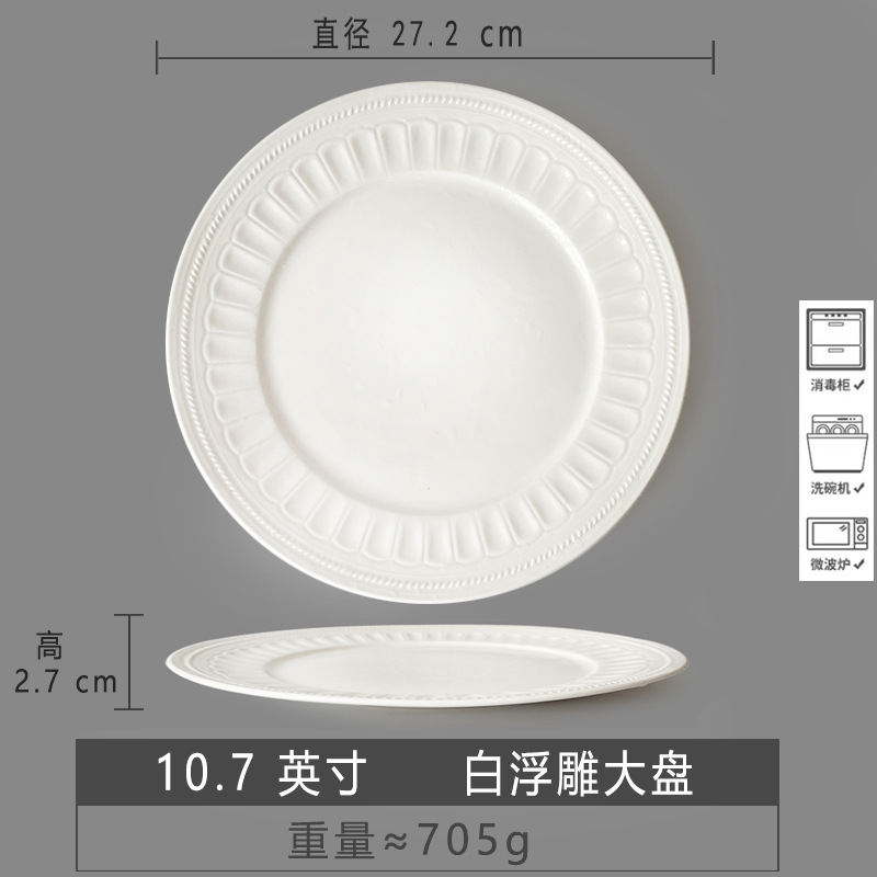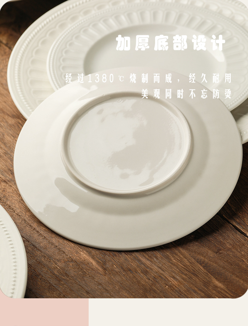 간단한 유럽식 구호 판 가정용 접시 가벼운 고급 빈티지 양각 세라믹 식기 서양식 플레이트 밀짚 모자 그릇 양각 그릇