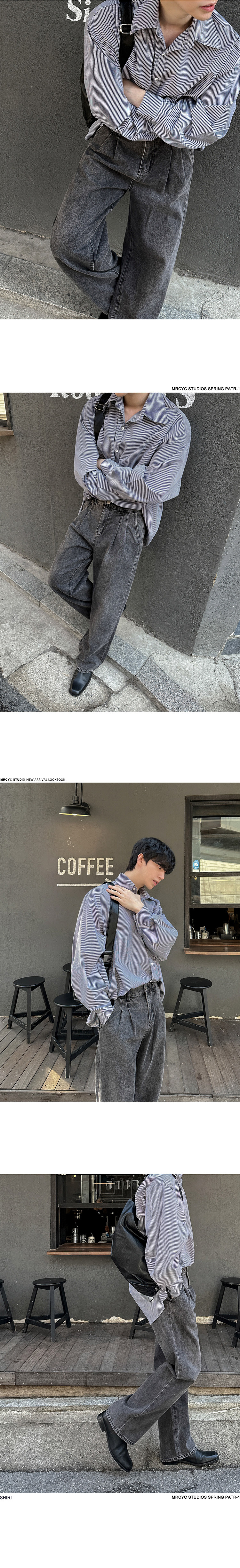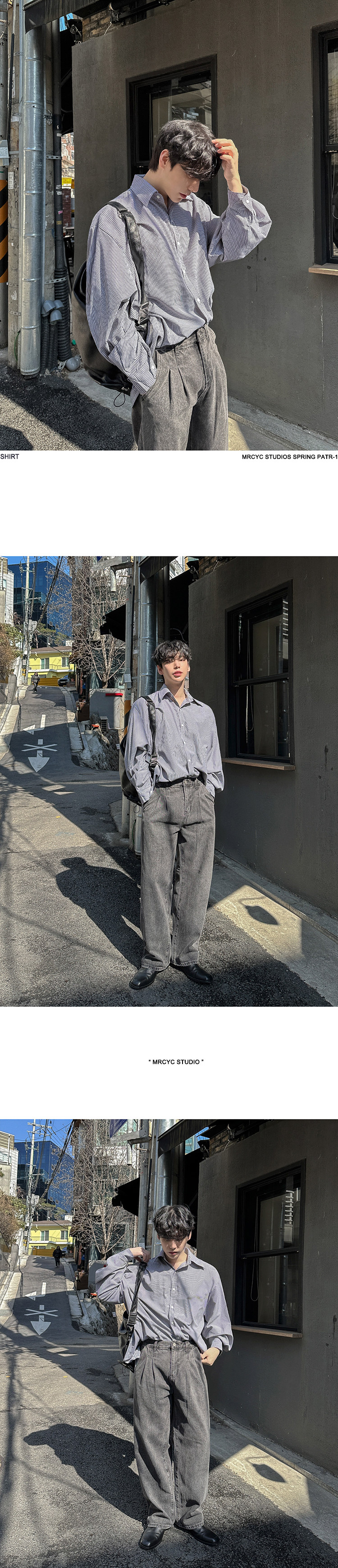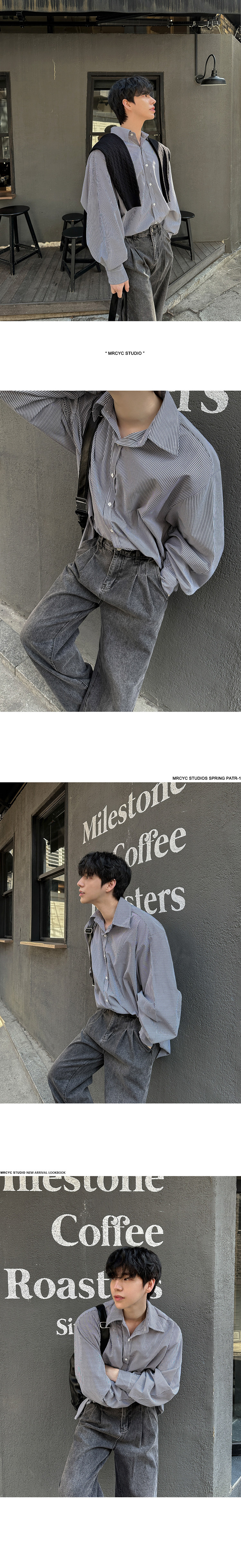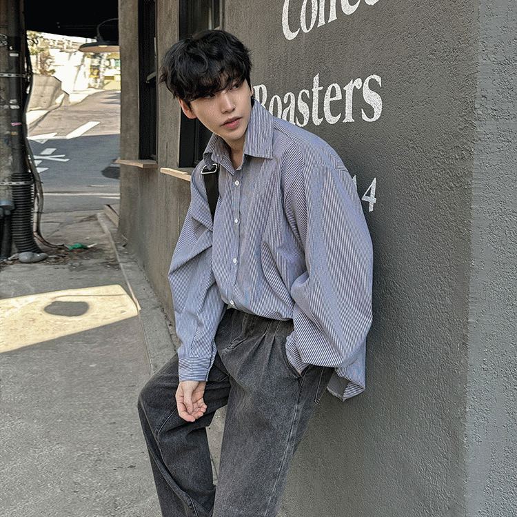 MYQ 일본식 줄무늬 캐주얼 셔츠 남자의 가을 느슨한 긴팔 셔츠 한국 스타일 유행 옷깃 탑스토어 가기
