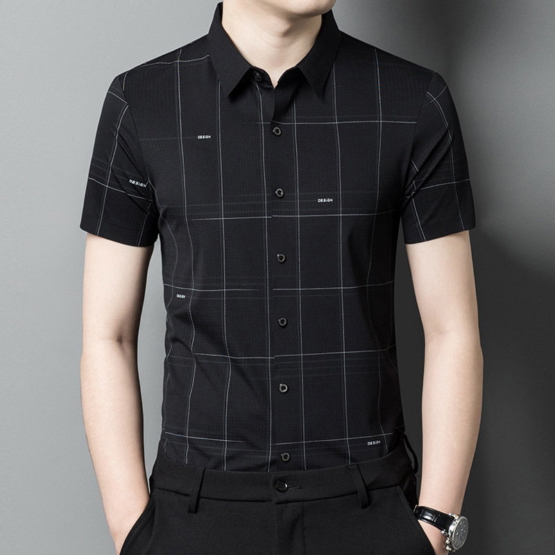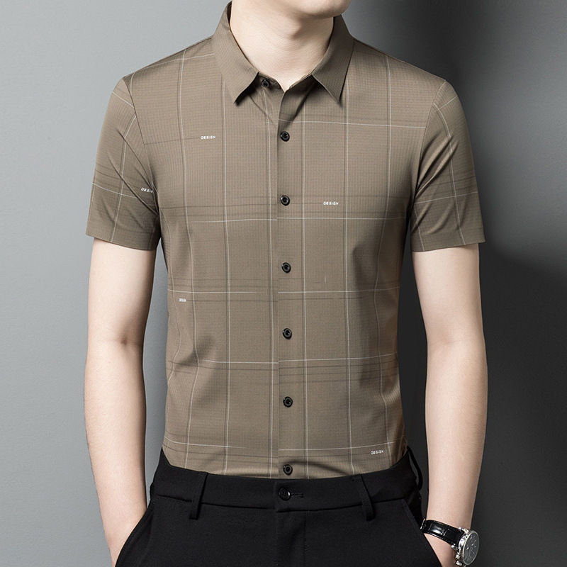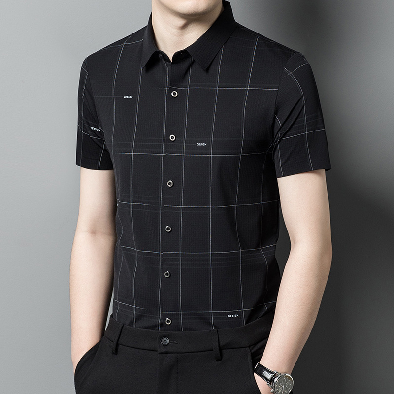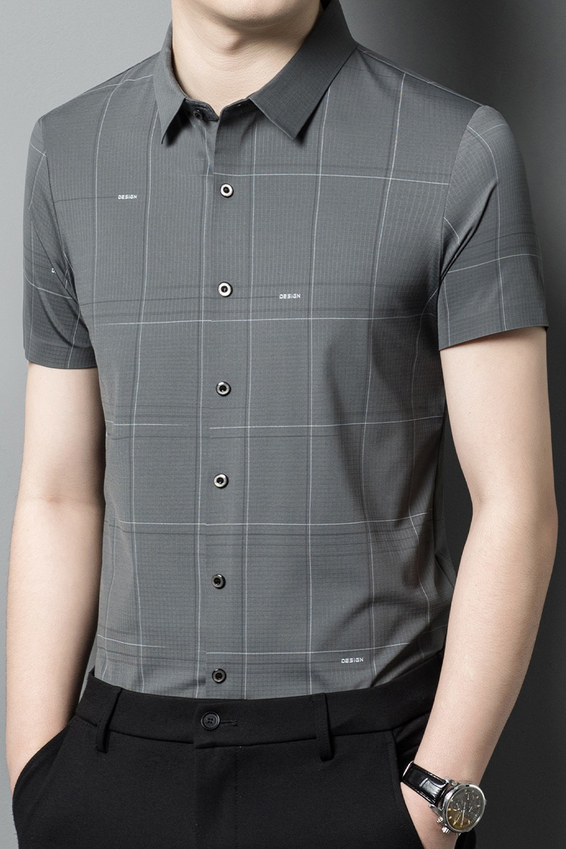 2023年夏季新款翻领T桖简约格子轻熟男装衬衫
